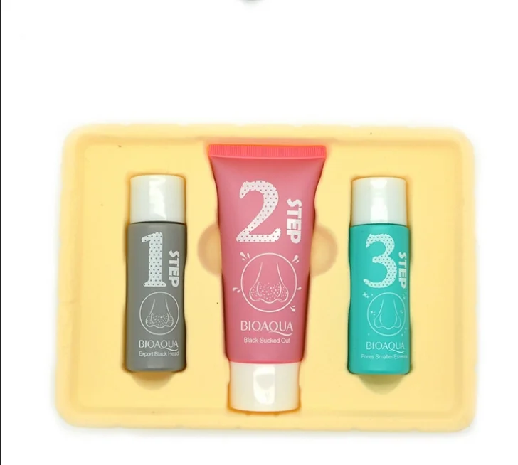 Набор для удаления черных точек BIOAQUA 3 в 1, увлажняющая черная маска, питательный уход за кожей для зоны T