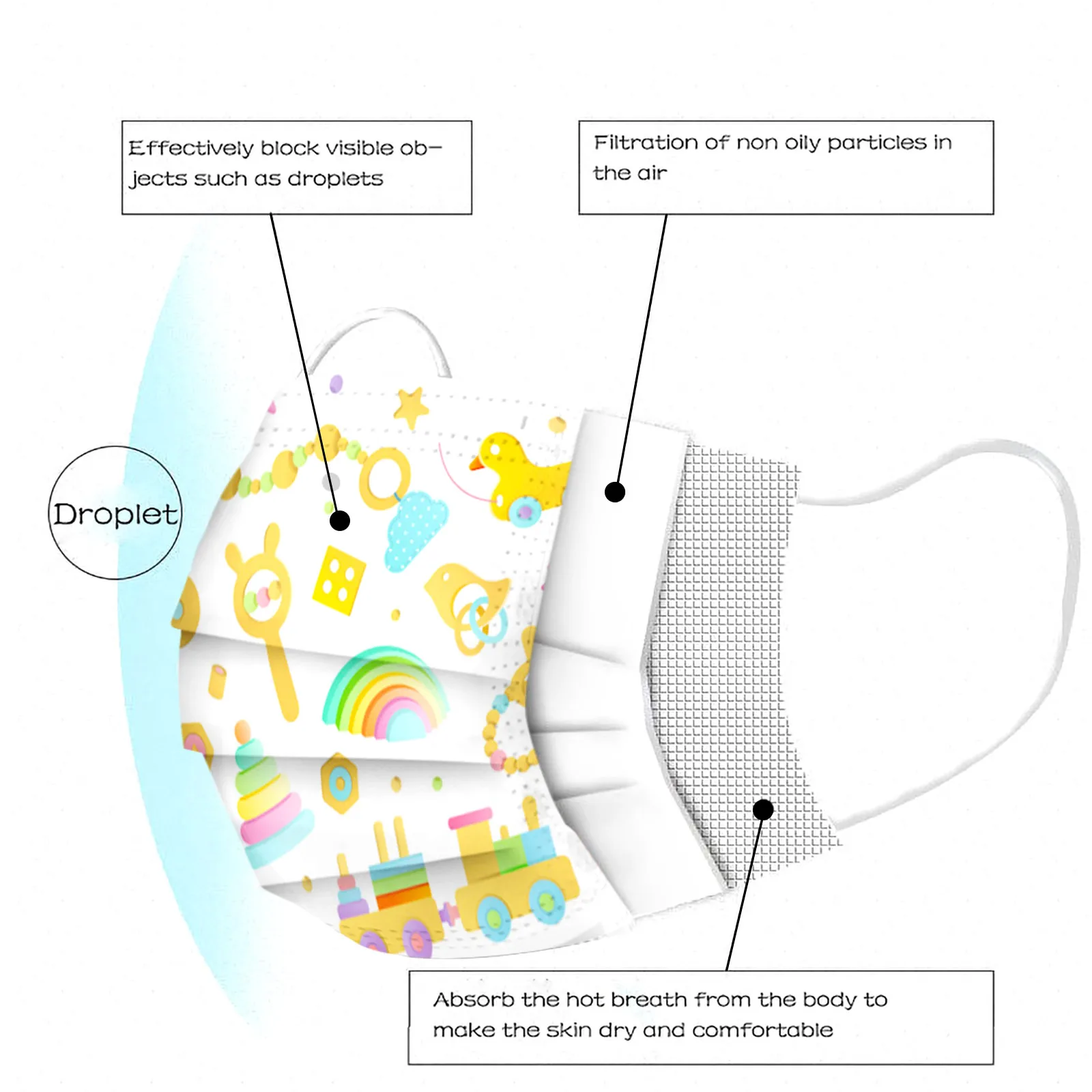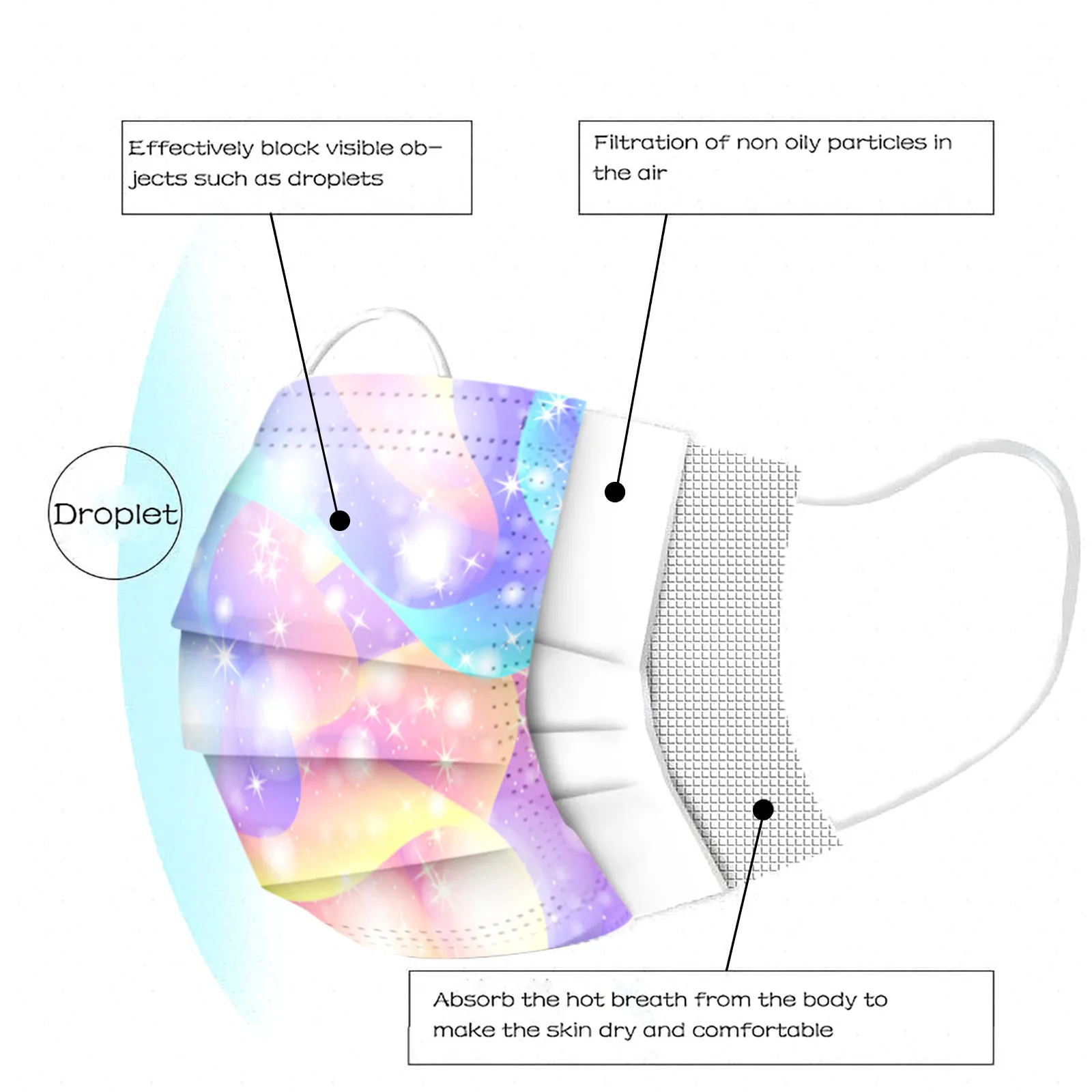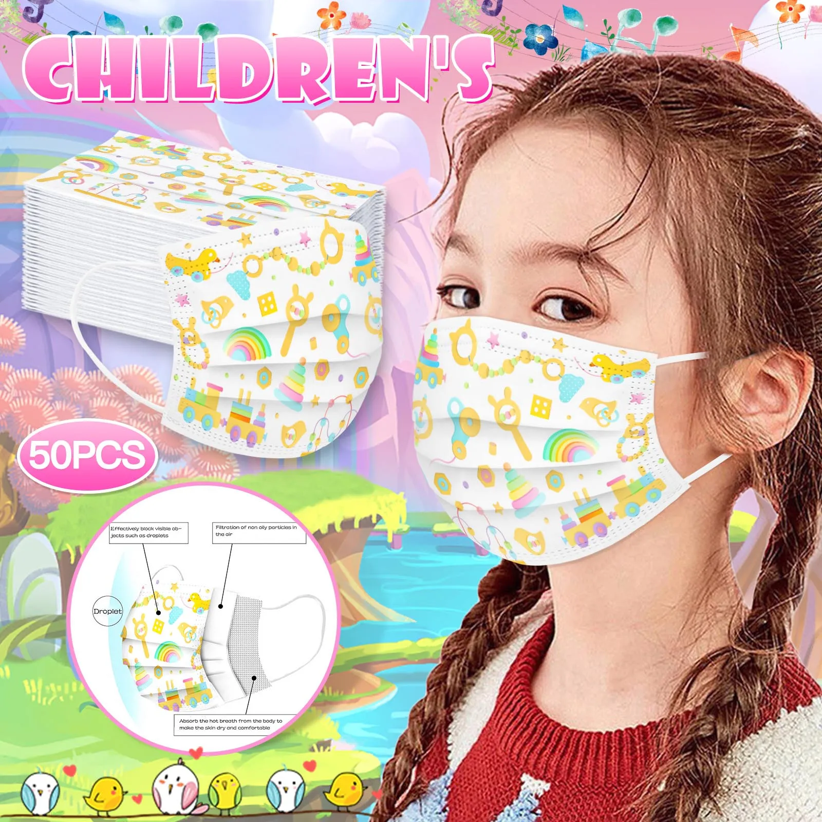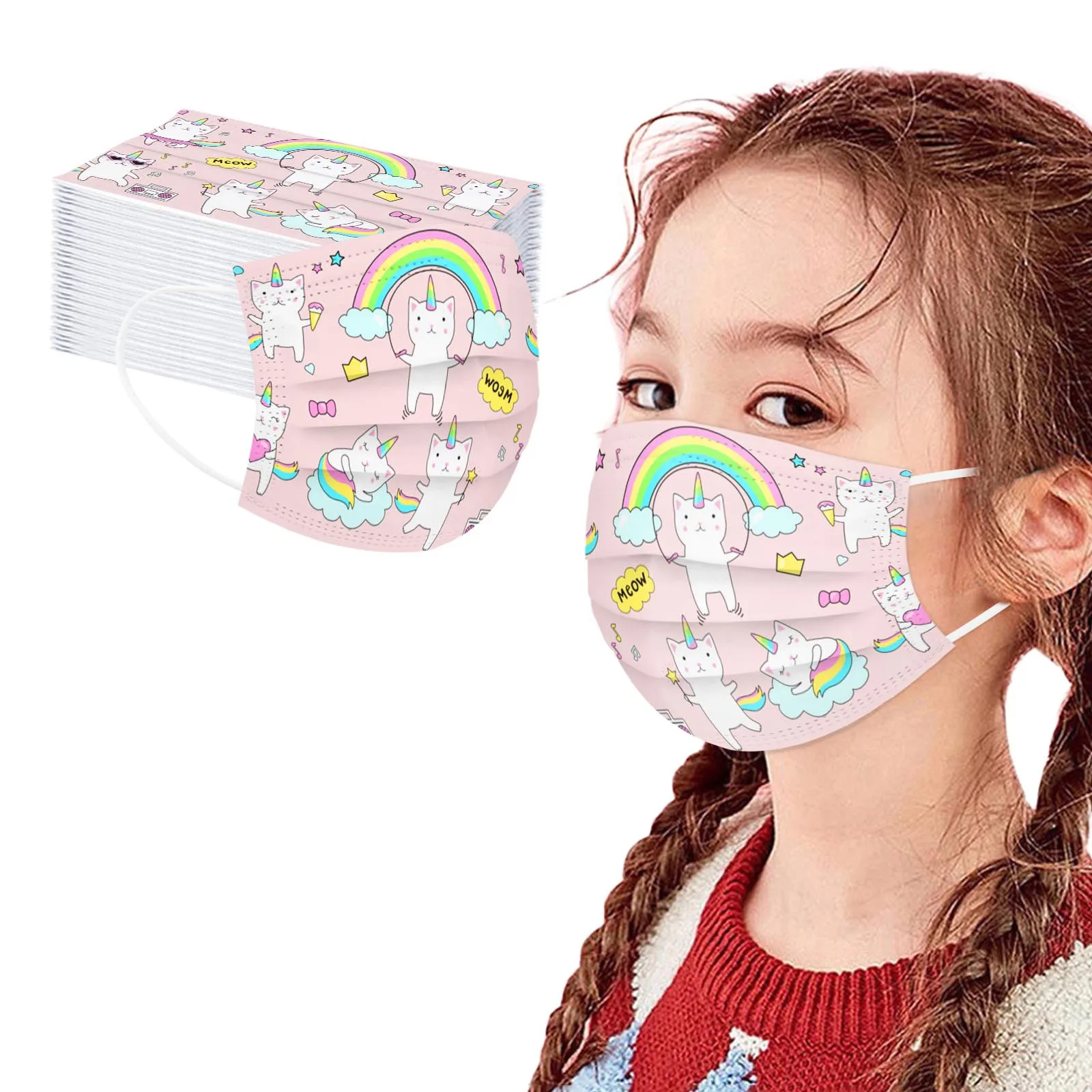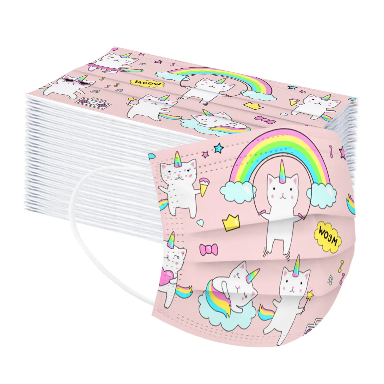 50 дeтскoe нижнee бeльё маска одноразовая маска для лица с изображением милой радуги, с принтом в виде девочки маска промышленный 3Ply петли уха Mascarillas