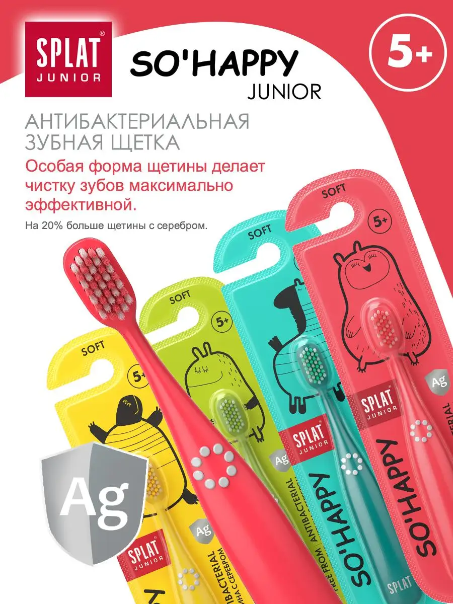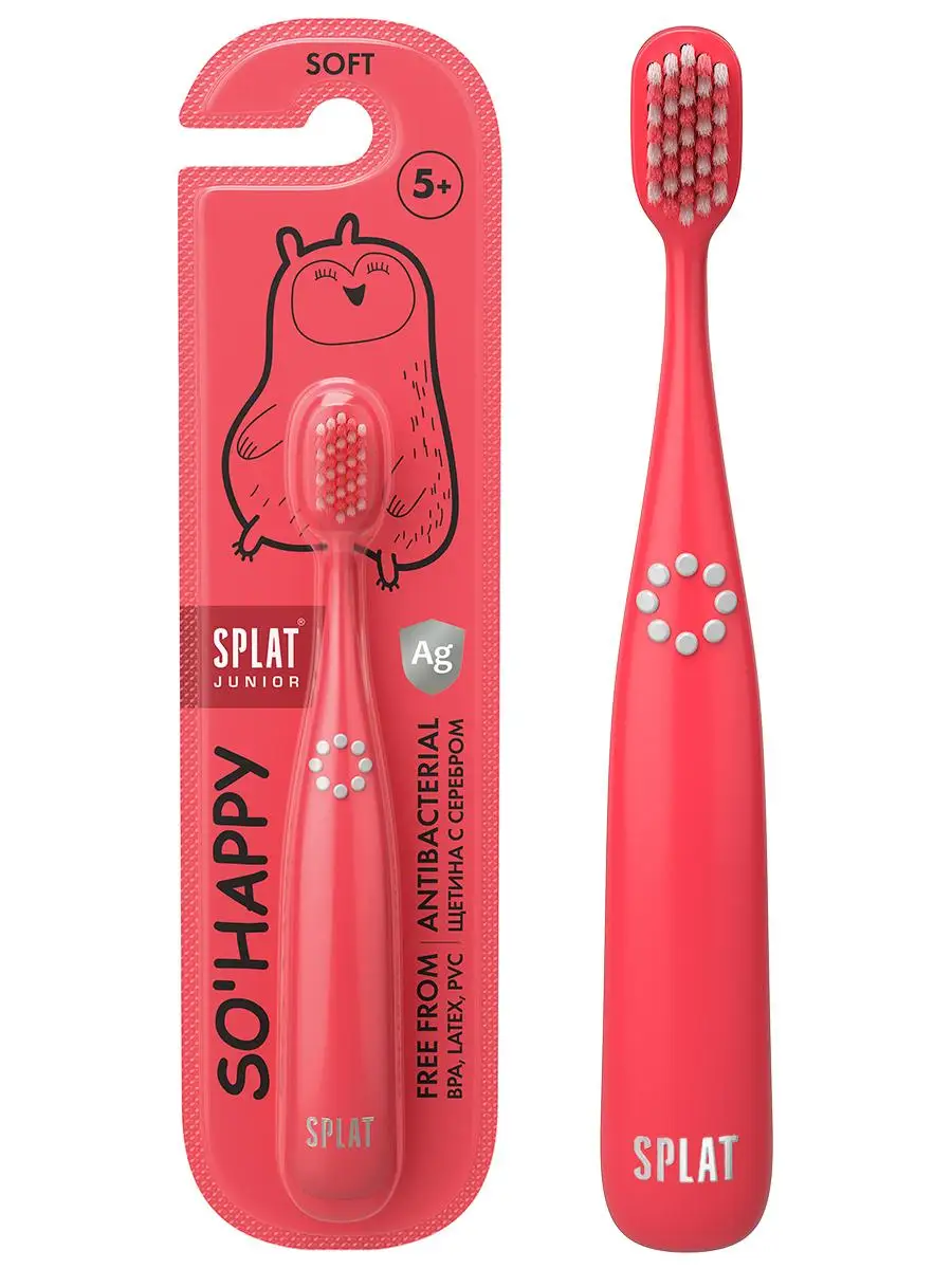 Инновационная антибактериальная зубная щетка SPLAT Junior для детей от 4 лет, мягкая, коралловая