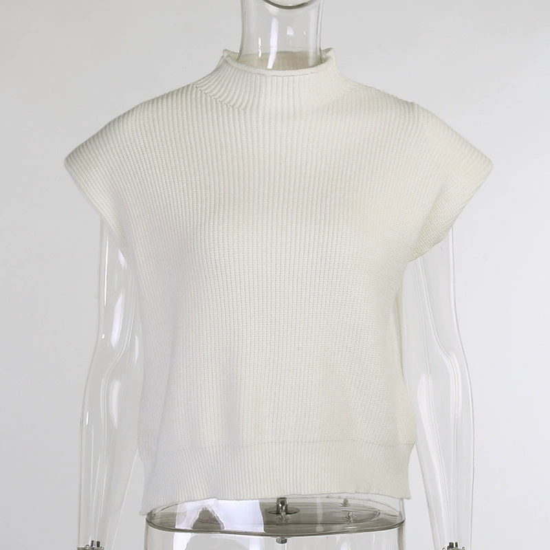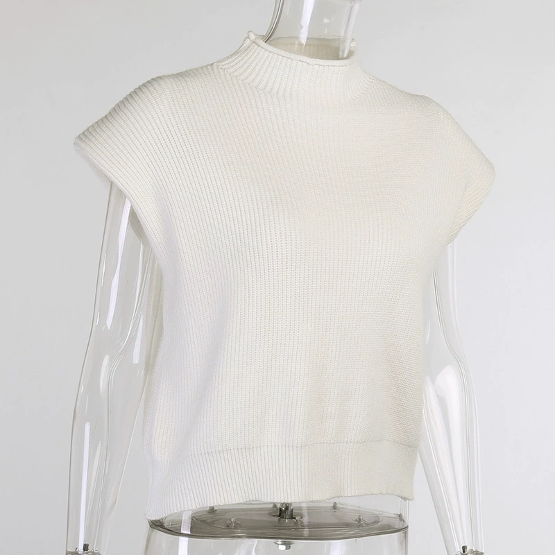 Женский вязаный свитер-водолазка без рукавов, с наплечниками
