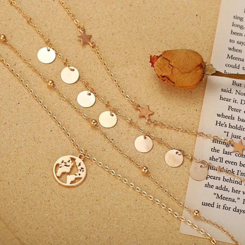Богемные модные Луна кружка Карта Подвеска, колье для женщин, ювелирные изделия, земли колье Многослойные Bijoux (украшения своими руками) стильное массивное ожерелье Collares Mujer Femme