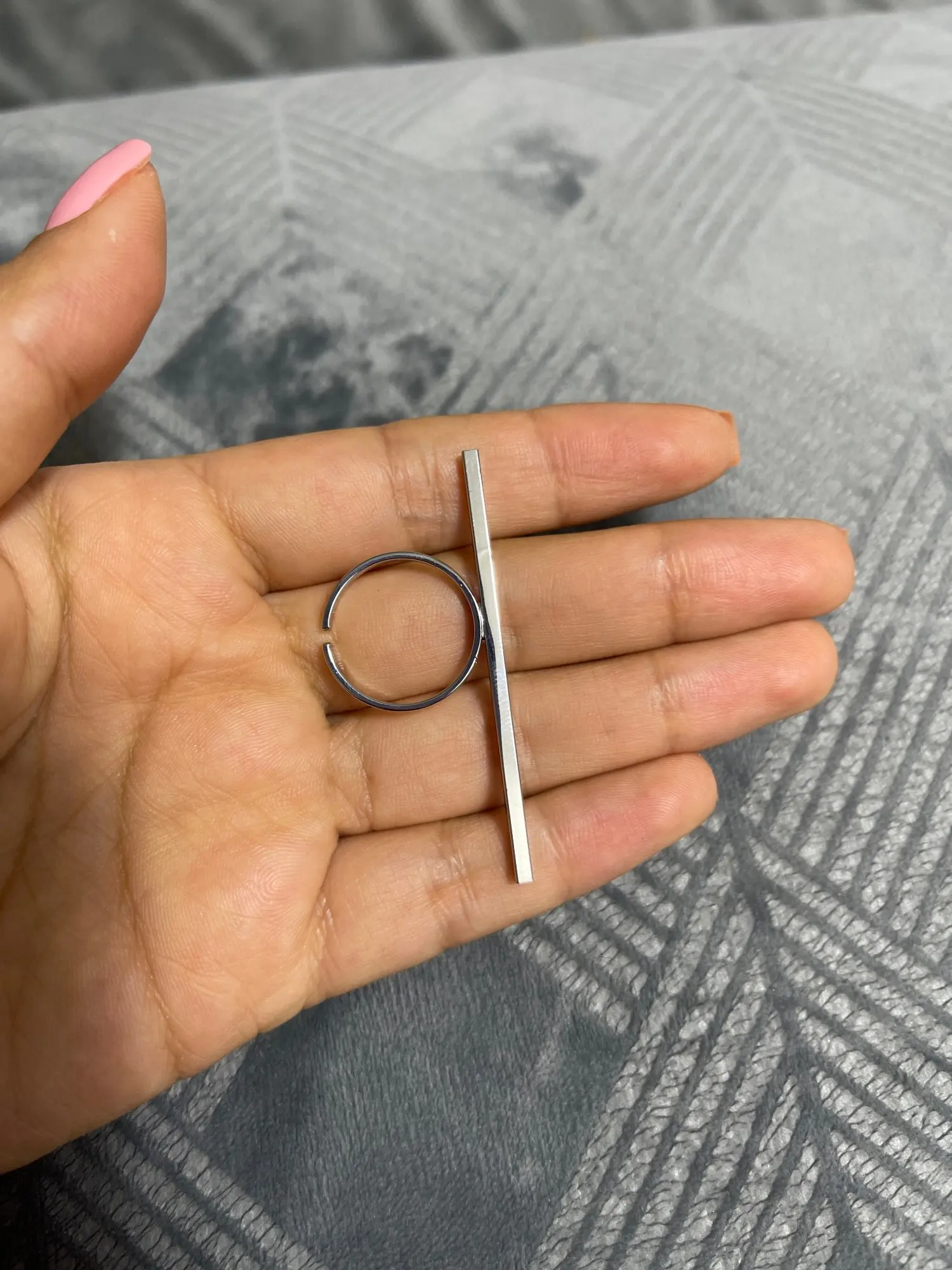 The bar in the ring is definitely smaller than I thought it was going to be! From the sellers photo it looks like if you put it the Middle finger, it covers also the ones on the side... but still a beautiful sizeable ring that could fit anybody.
