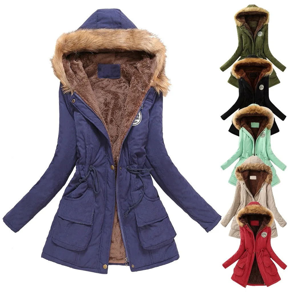 ❤Женские теплые пальто с капюшоном, парки, сохраняют тепло. Классическая зимняя куртка-парка, Женская куртка с капюшоном, женская верхняя одежда. Классические пальто; Цвета: зеленый, хаки, черный, красный и т. Д.
