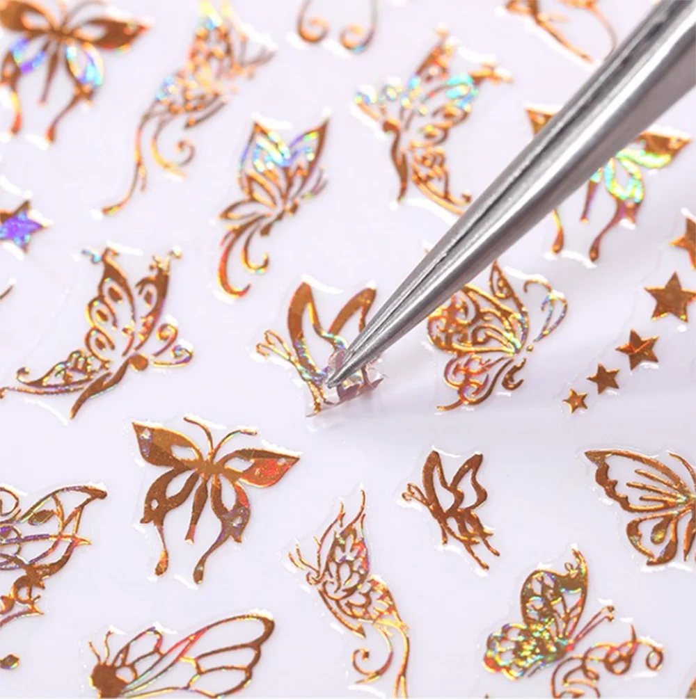 1 шт. голографические 3D наклейки-бабочки для дизайна ногтей клейкие слайдеры Красочные золотые переводные наклейки для ногтей сделай сам Фольга Обертывания украшения