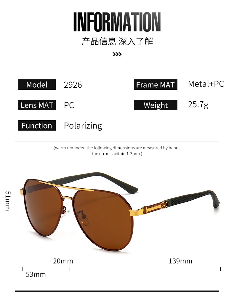 Мужские солнцезащитные очки с поляризацией, в металлической оправе