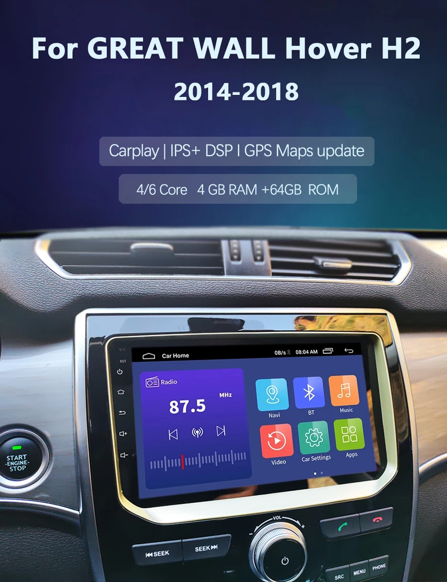 Автомагнитола с навигацией и дисплеем для GREAT WALL Haval H2 2014 -2018, Android 11, мультимедийный видеоплеер, Авторадио, радио, рекордер