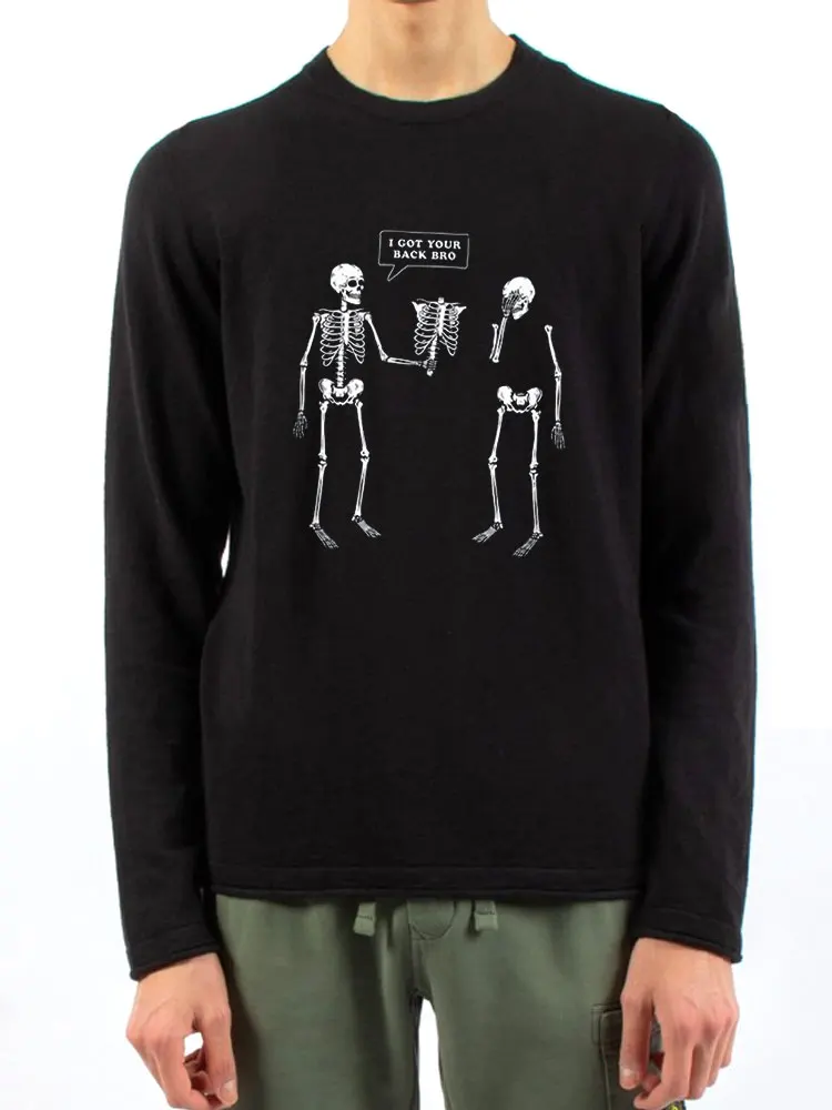 Мужская футболка COOLMIND, из 100% хлопка, с длинным рукавом и забавным принтом черепа, повседневная, свободная, с круглым вырезом