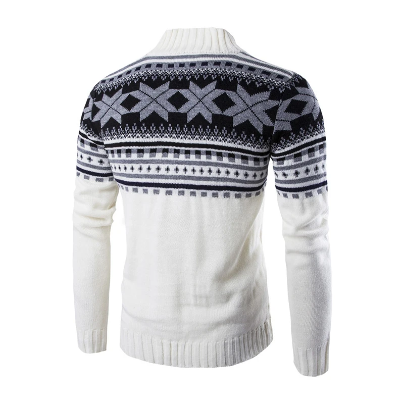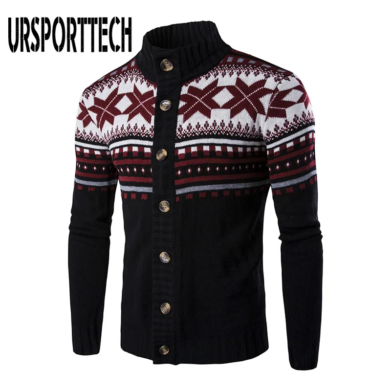 Рождественский свитер, мужской модный осенне-зимний теплый однобортный вязаный кардиган с принтом, повседневный мужской свитер с воротником-стойкой