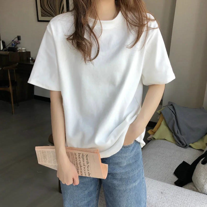 Футболка женская хлопковая оверсайз, базовый Свободный Топ в стиле ...