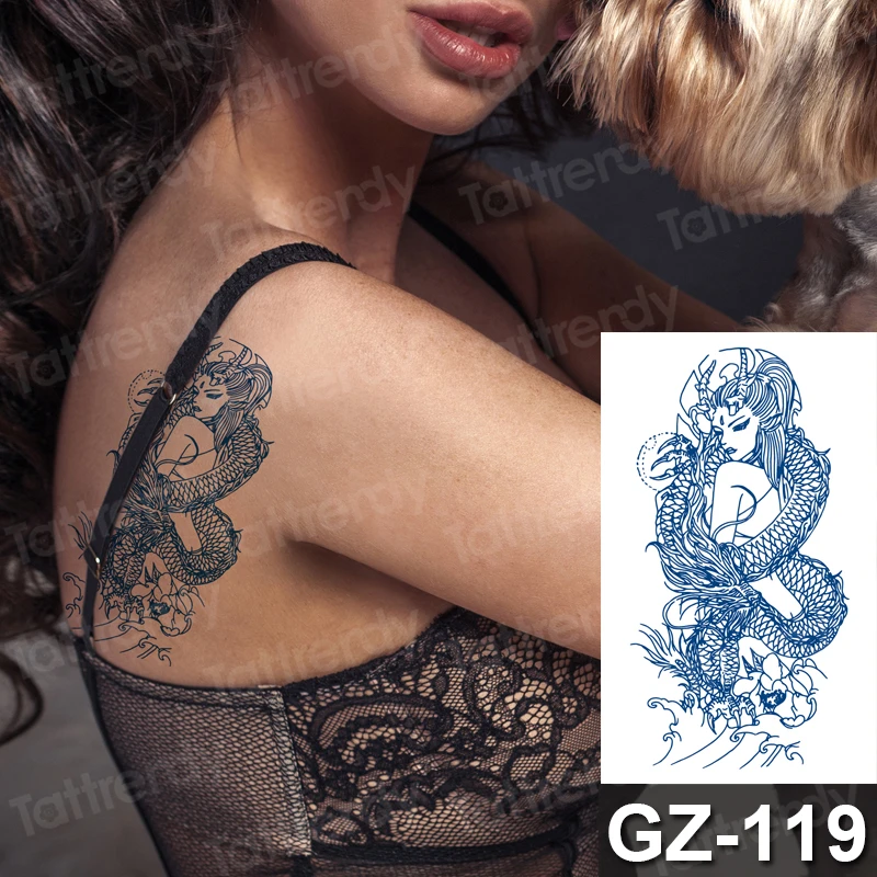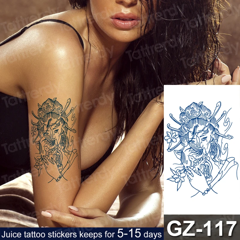 Синие чернила сок временные татуировки наклейки 15 дней долговечные японские гейши с маской поддельные руки татуировки рук цветок для женщин