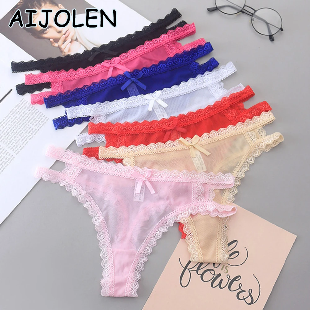 Кружевные трусики с бантиками AIJOLEN с низкой талией, сексуальные женские стринги и стринги, однотонное дышащее Сетчатое нижнее белье