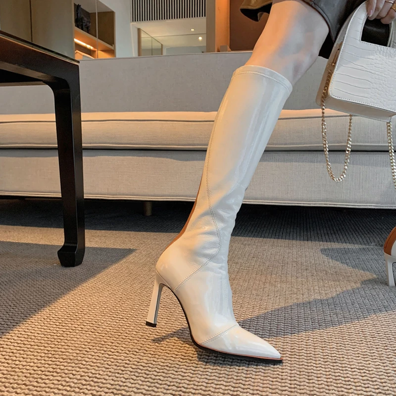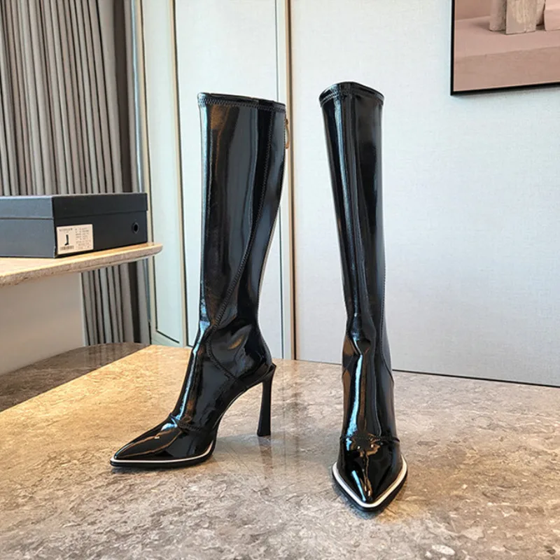Женские эластичные сапоги из лакированной кожи, высокие сапоги с ос...