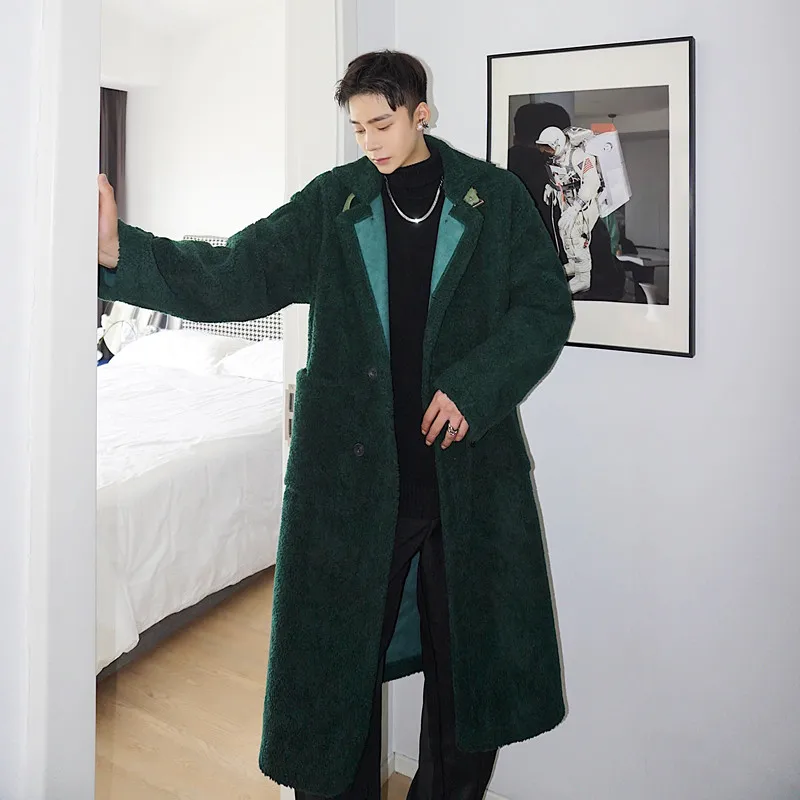 Тренчкот мужской из искусственной овечьей шерсти, плотный длинный тренчкот, уличная одежда, винтажная Повседневная ветровка, Осень-зима