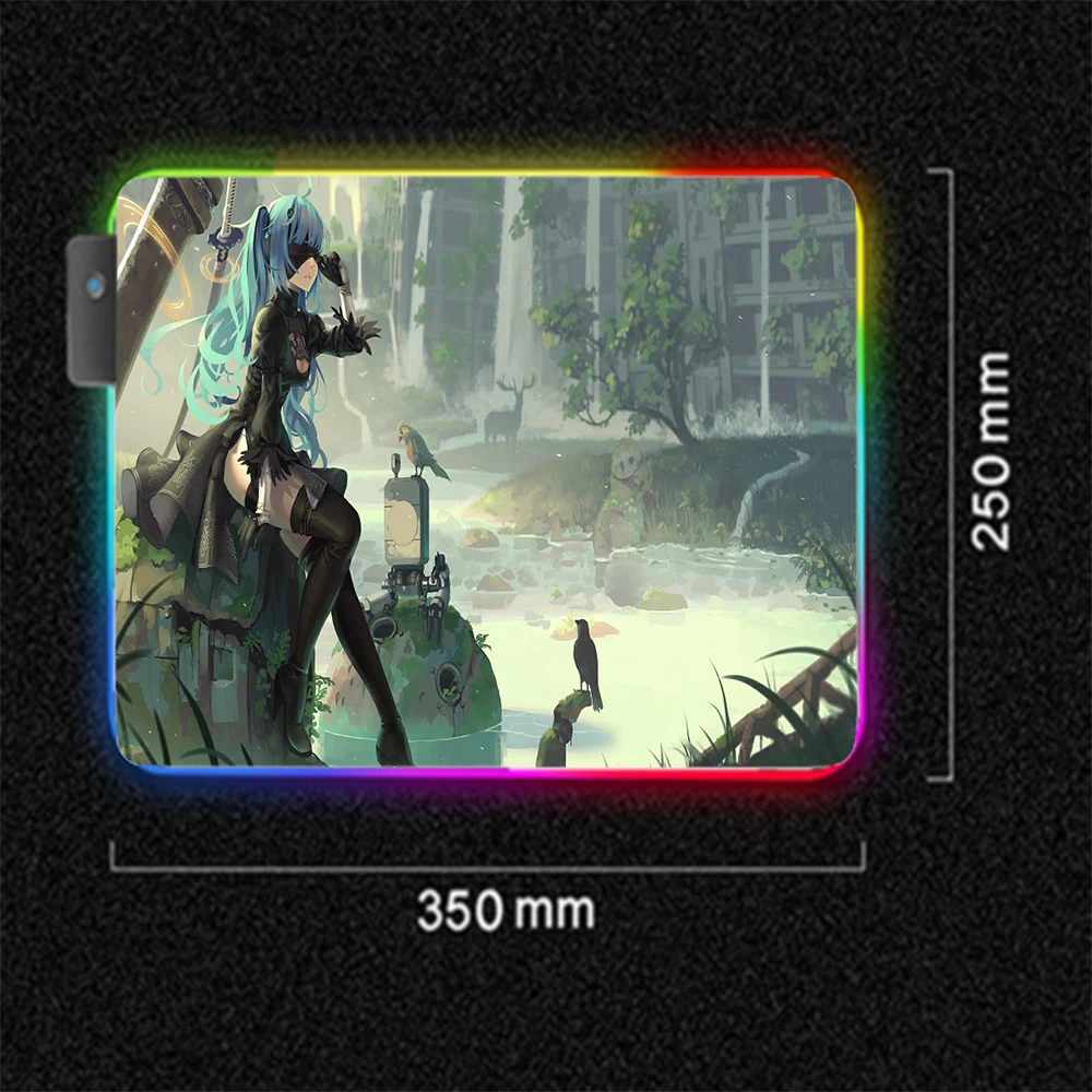 Коврик для мыши NieR Automata, RGB, черный, с светодиодный светкой