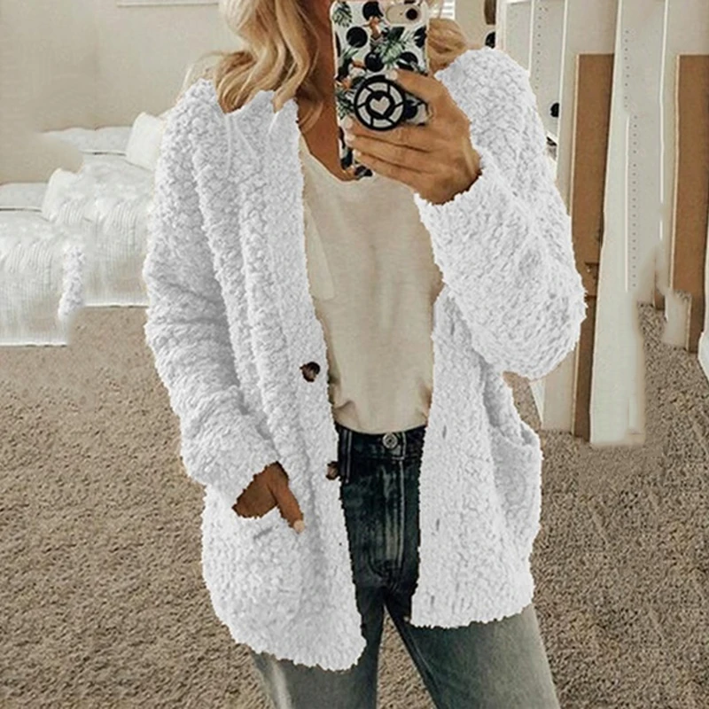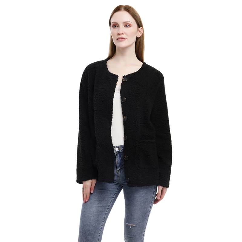 Женская куртка из искусственного меха на осень и зиму, однотонное розовое плотное теплое пальто из овечьей шерсти, Женская куртка оверсайз из искусственного меха с двумя карманами
