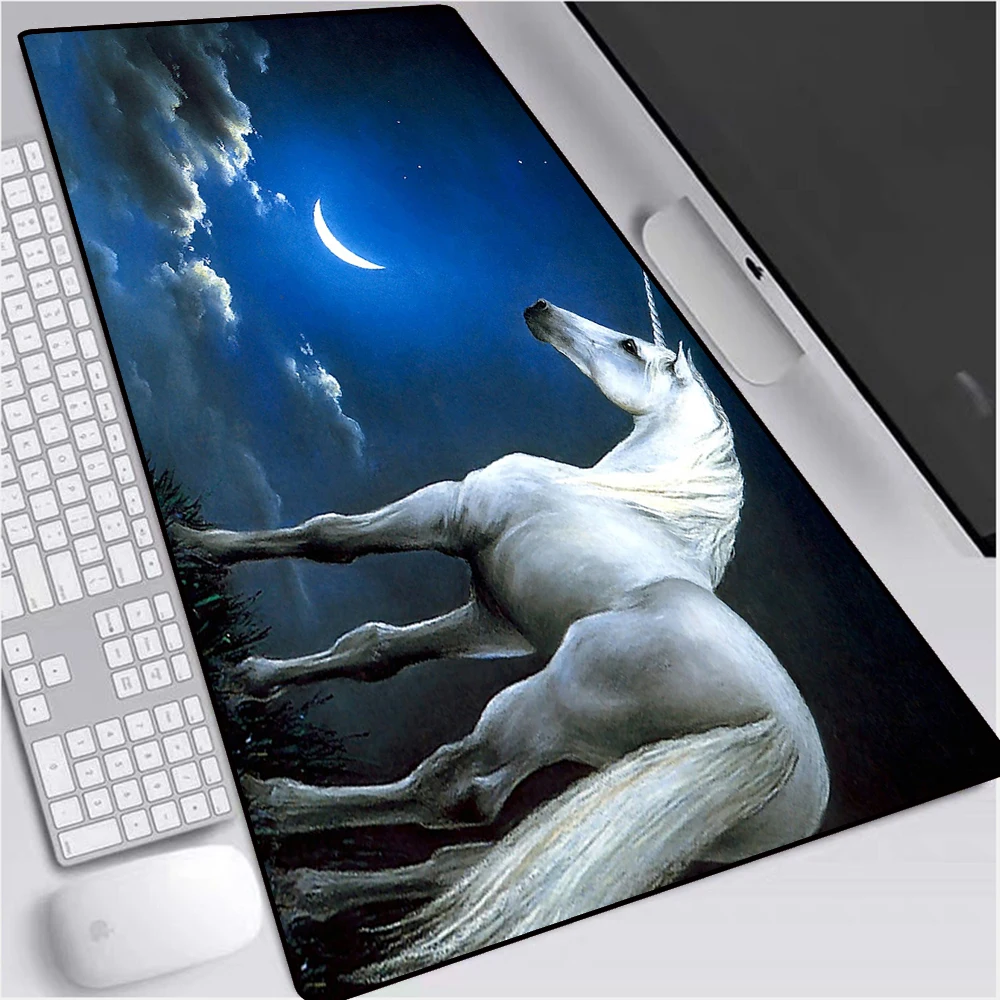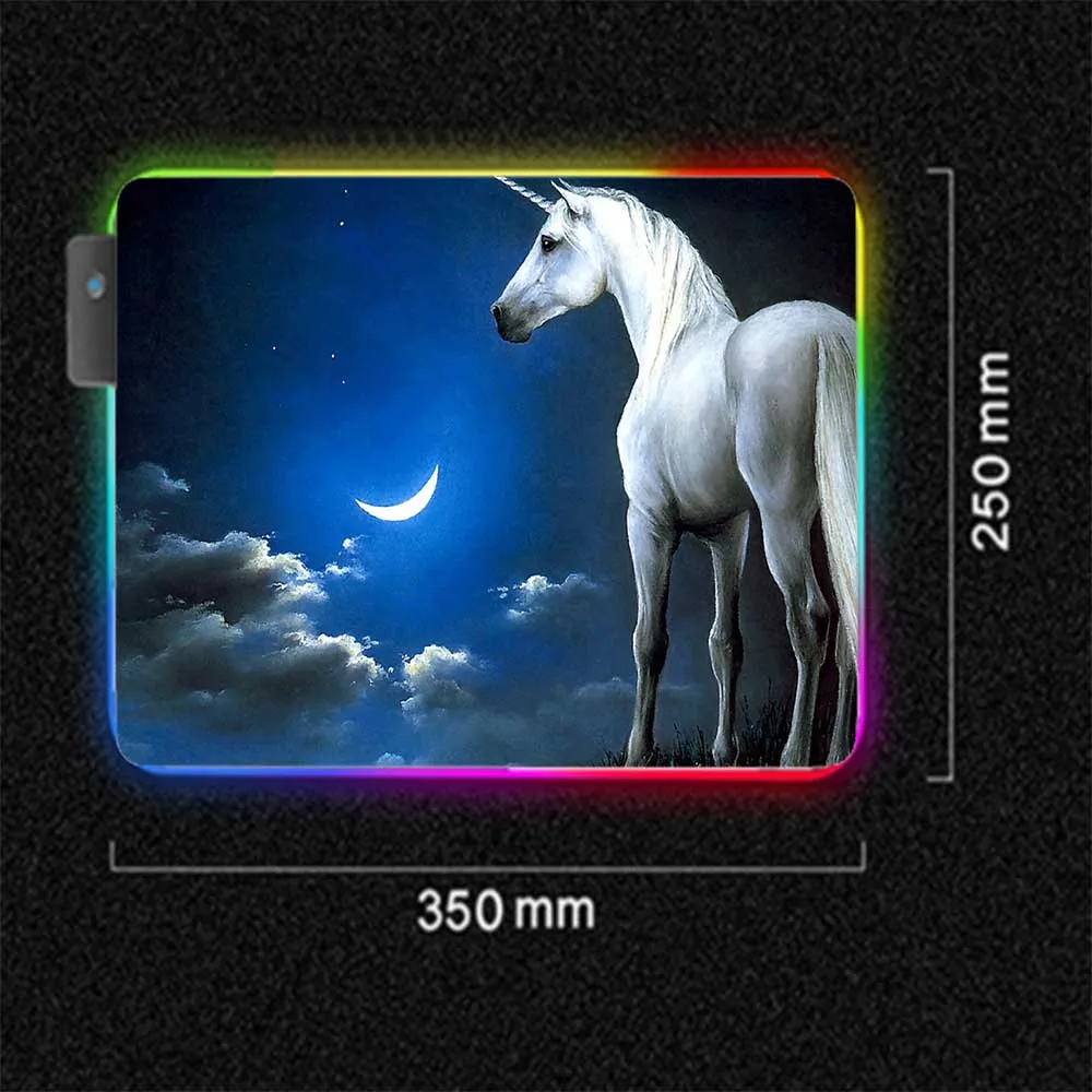 Большой игровой коврик для мыши Mairuige с RGB-подсветкой, черный точный коврик для мыши с животными, лошадью на Луне, нескользящий игровой Настольный коврик для ноутбука Xxl