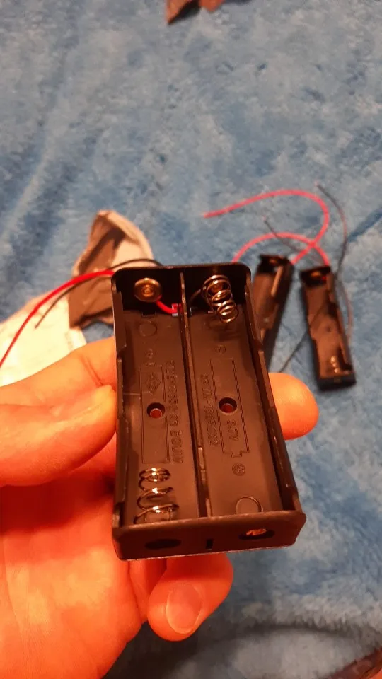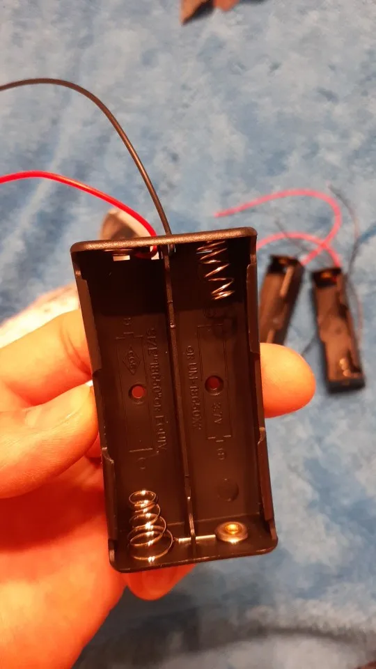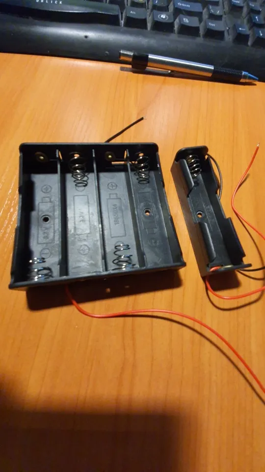 Заказано 28 октября, на почте в Минске 29 ноября. Трек не отслеживался. Доставка бесплатная. Холдеры упакованы в пакет с пупыркой внутри дошли без повреждения. Предназначены для аккумуляторов типа 18650. Соответствуют описанию, сделаны из пластика, не вонючий. Аккумуляторы фиксируются надёжно за счёт боковых бортиков, правда и доставать трудновато. Минусовой контакт с пружинкой умеренной жёсткости. Холдеры приходят с припаянными проводками длиной около 10 см каждый.