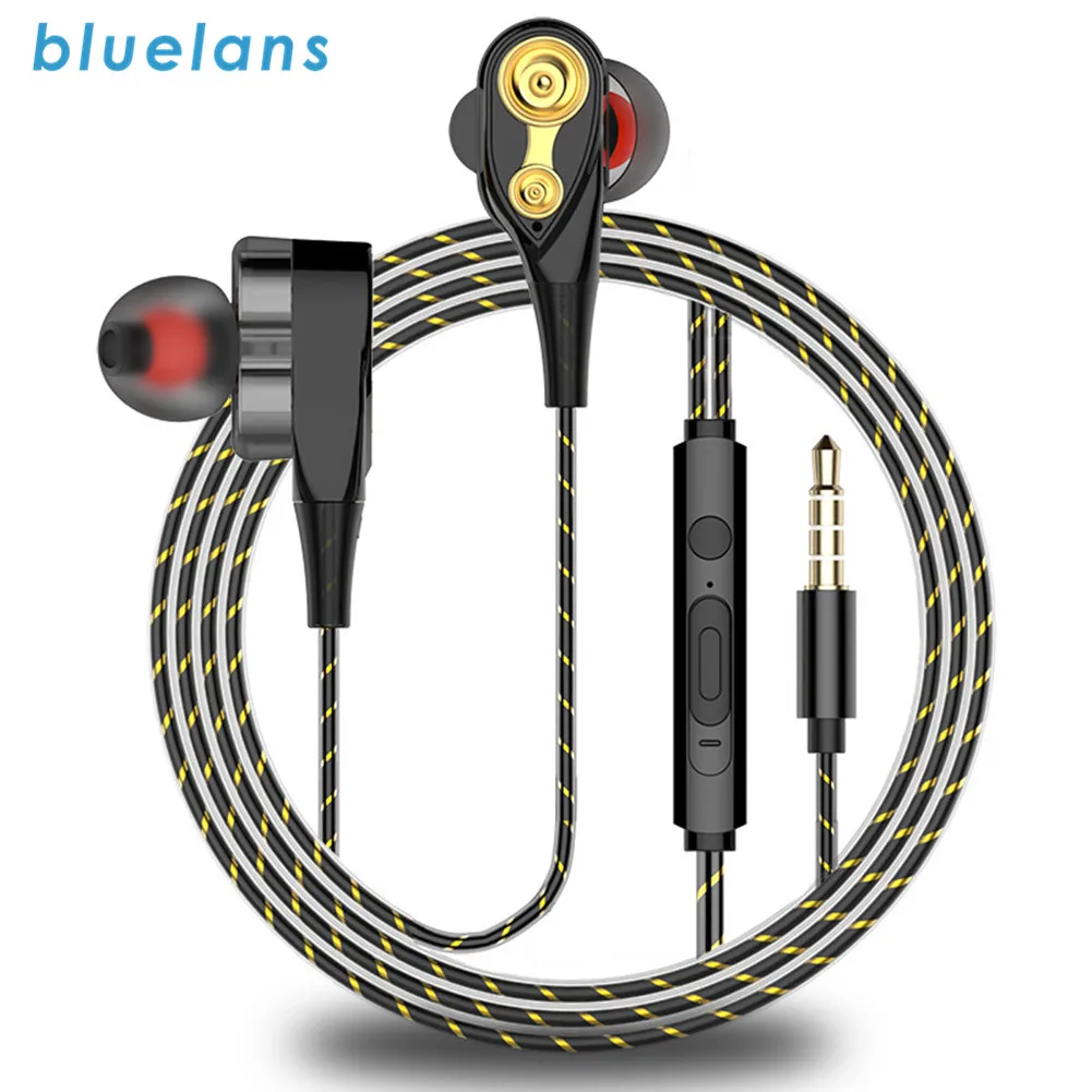 3,5 мм двойной привод двойной подвижной катушки железные стерео наушники в ухо бас наушники 3D стерео регулятор громкости с микрофоном для IPhone Xiaomi
