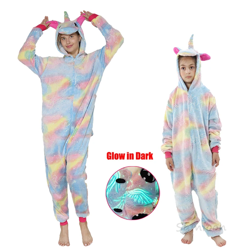 Пижама-кигуруми унисекс, для мальчиков и девочек, зимняя, с единорогом