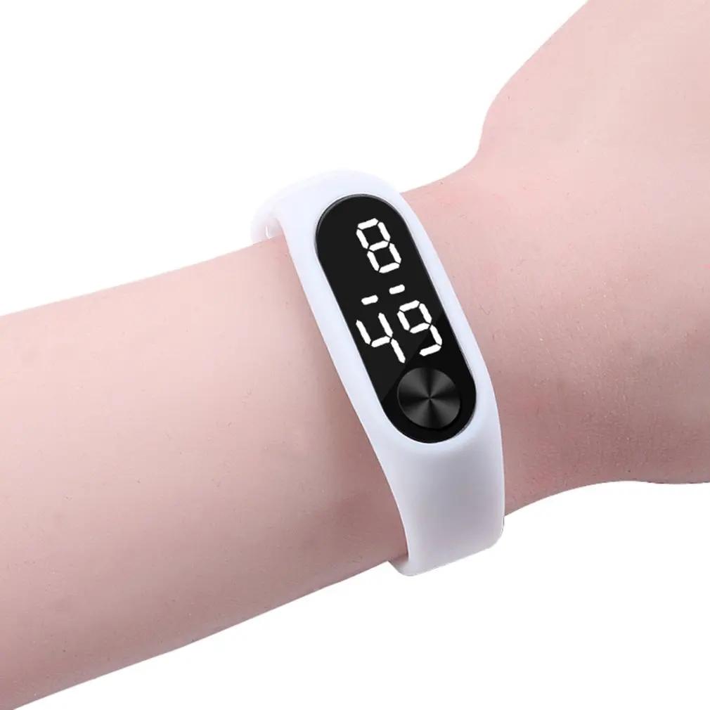 Особенности:Размер: 85*55 ммСтиль: спортивныйГлубина водонепроницаемости: Нет водонепроницаемостиМатериал циферблата: HardlexЧехол Форма: прямоугольникМеханизм: ЦифровойМатериал ремешка: силиконХарактеристики: светодиодный дисплейШирина ремешка: 17 ммДиаметр циферблата: 20 ммГруппа Длина: 23,5 смЧехол Толщина: 12 ммЧехол Материал: резинаРемешок: СиликонЦвет: белый, желтый, красный, фиолетовый, зеленый, синий, черный, оранжевый, розовый, темно-розовый, армейский зеленый, мятный, зеленый, королевский синий