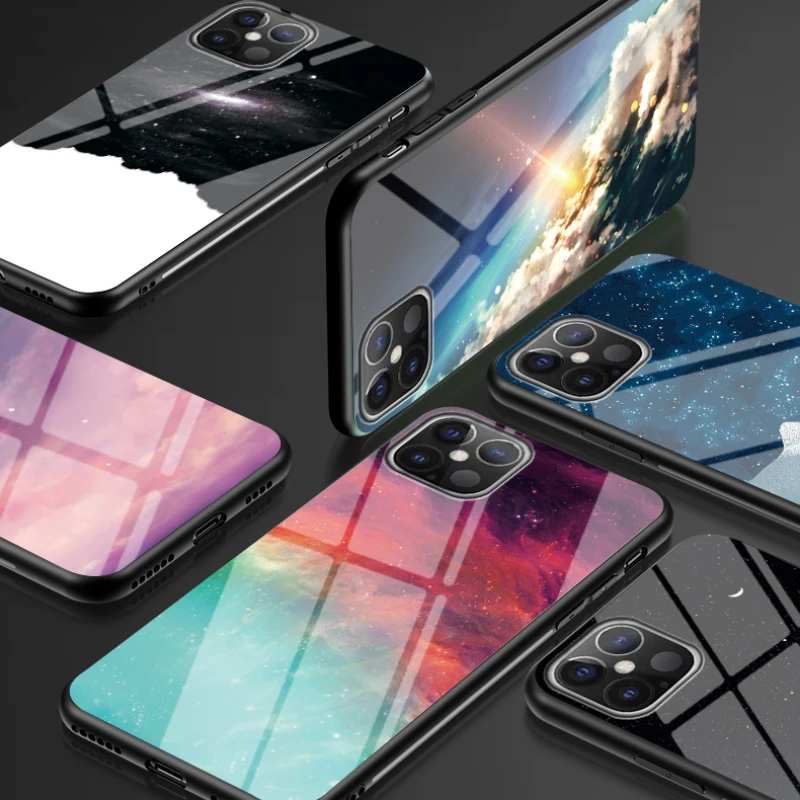 Чехол для телефона серии Звездное небо для iPhone 12 11 Pro Max, жесткий чехол из закаленного стекла для iPhone 6 6S 7 8 Plus X XR XS Max, чехлы