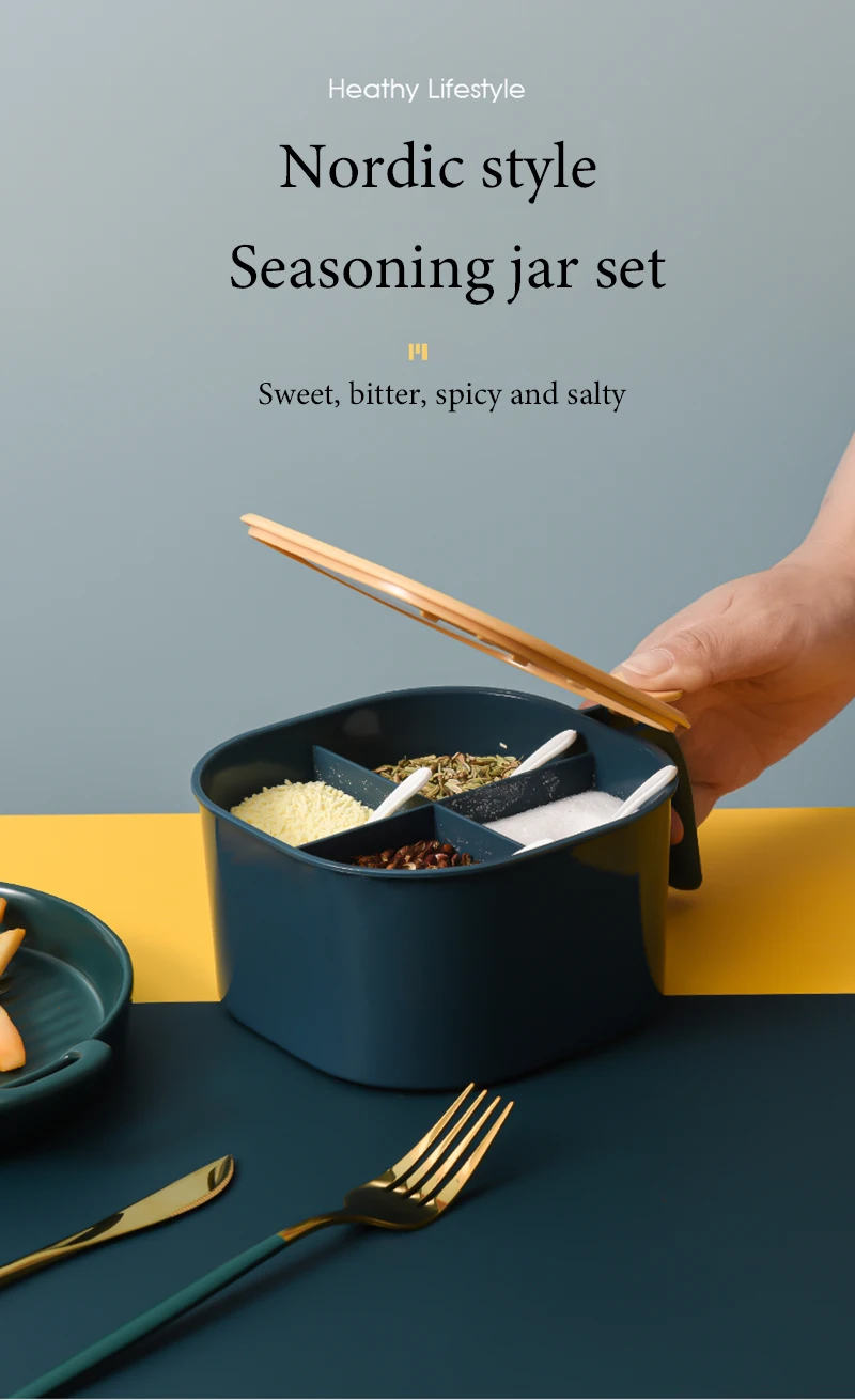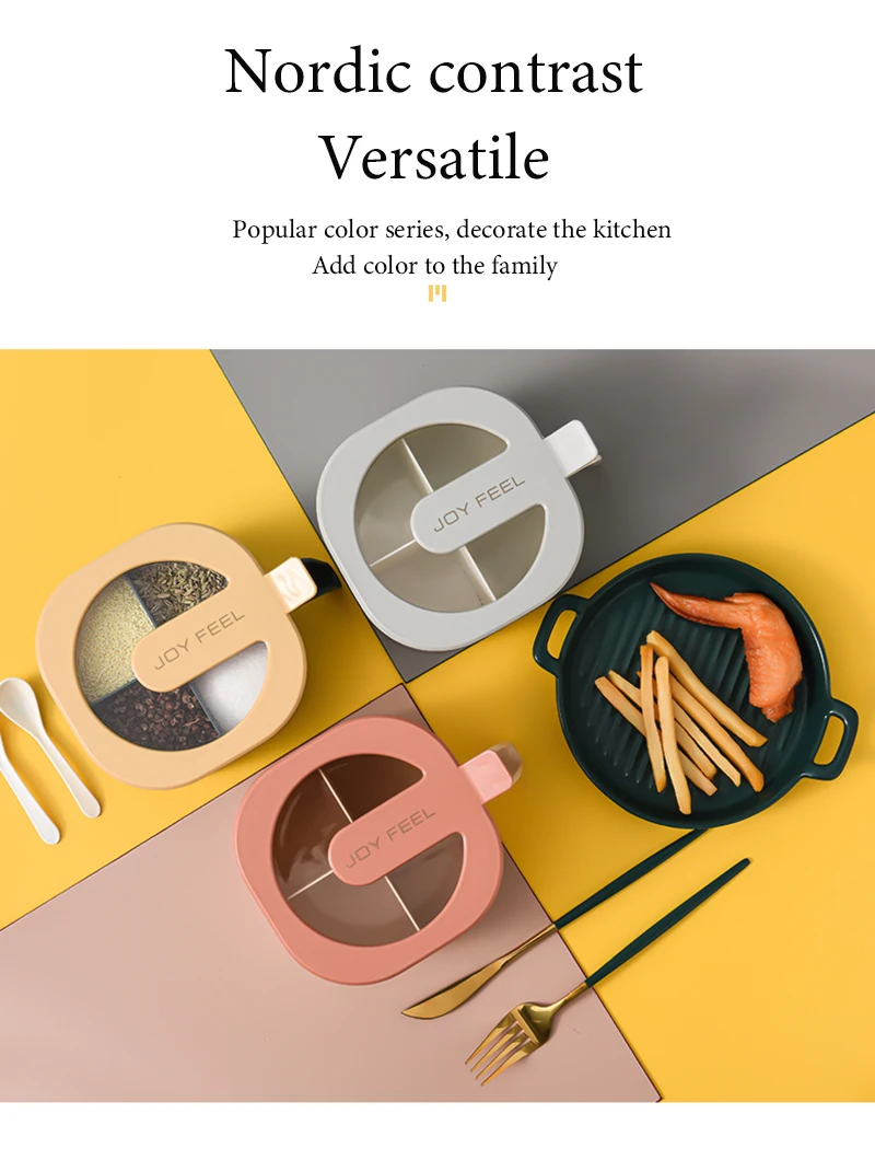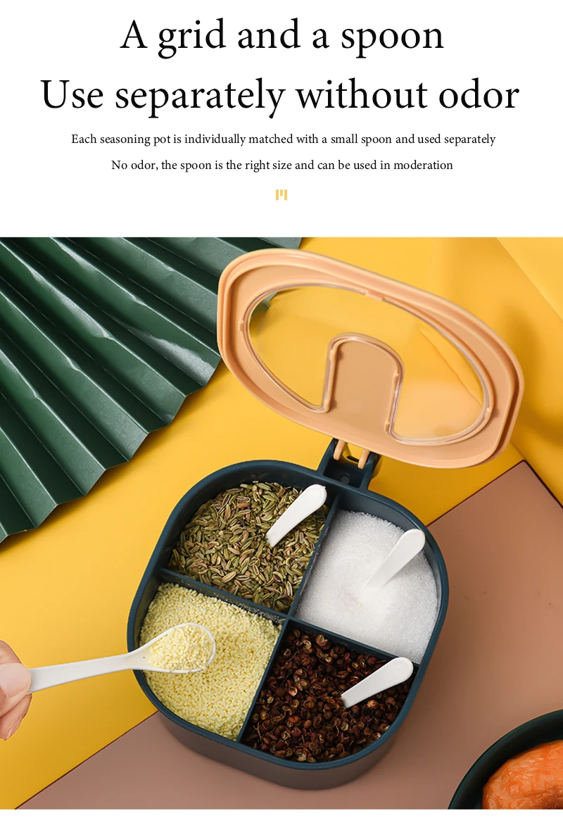 Пластиковые коробки для специй, кухонный Органайзер с 4 ячейками для приправ, контейнер для бутылок для приправ с ложками