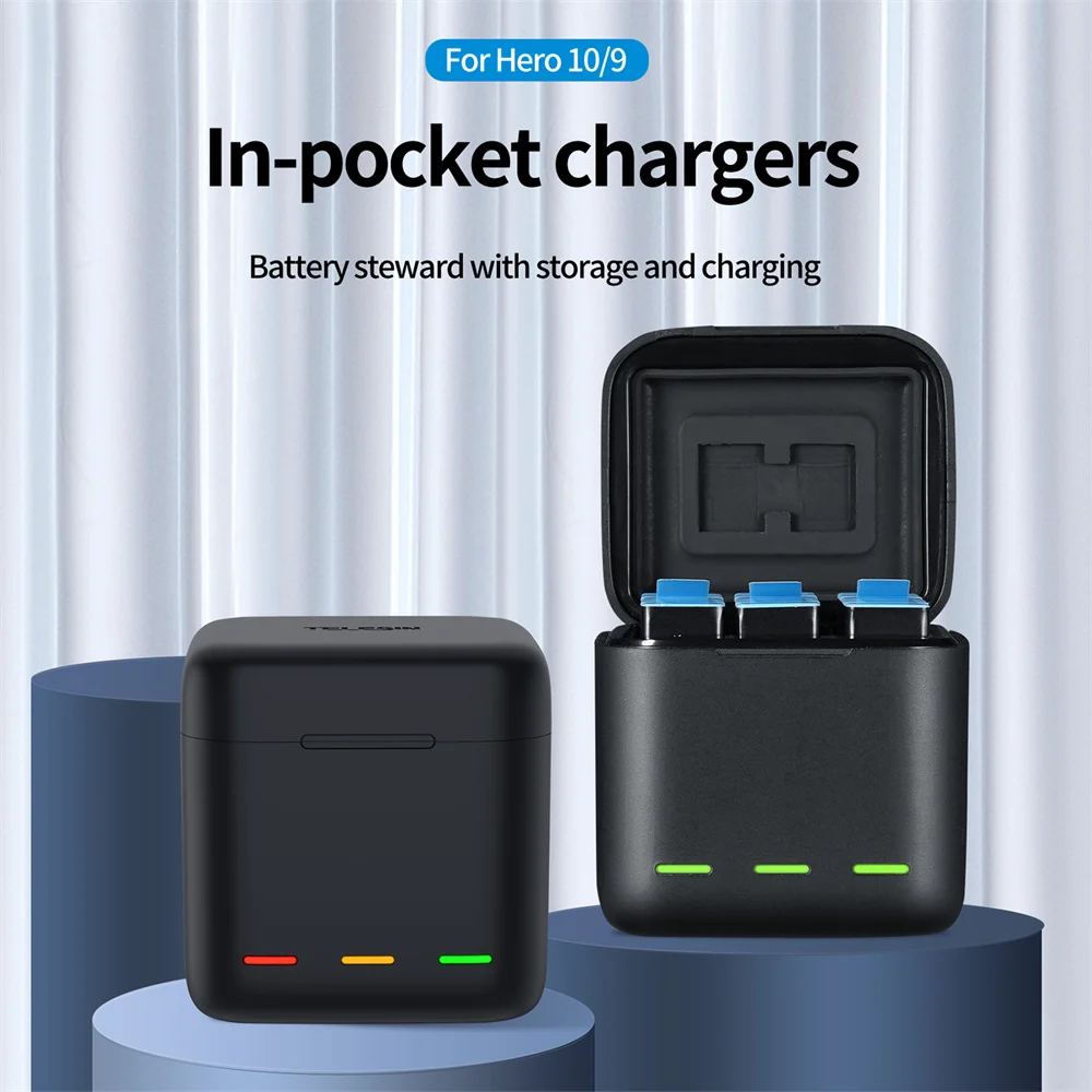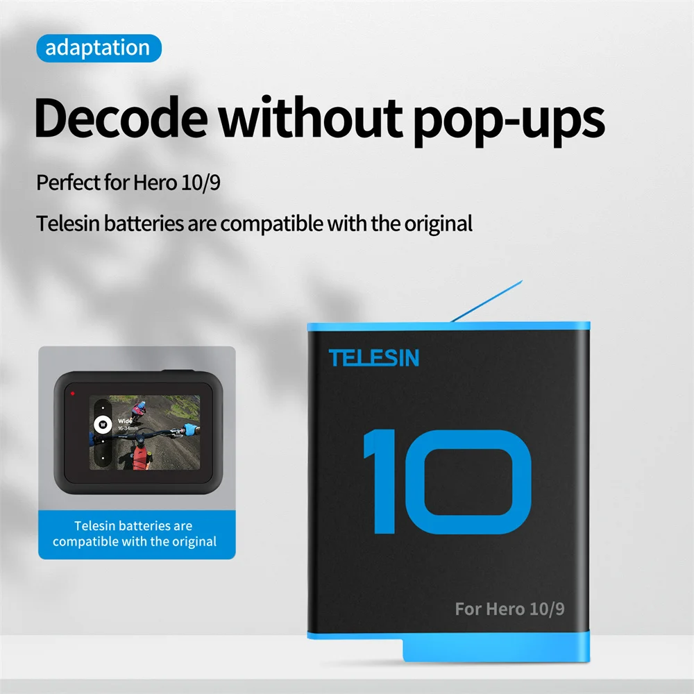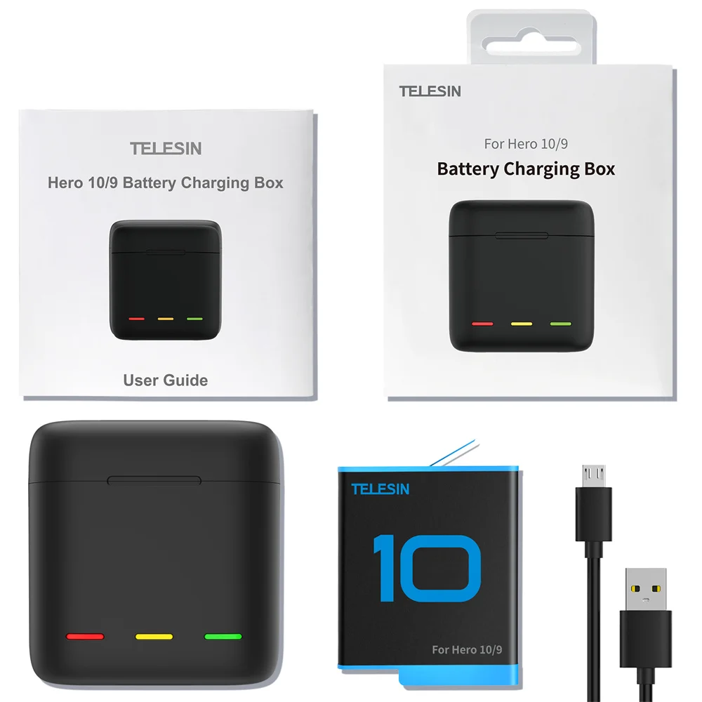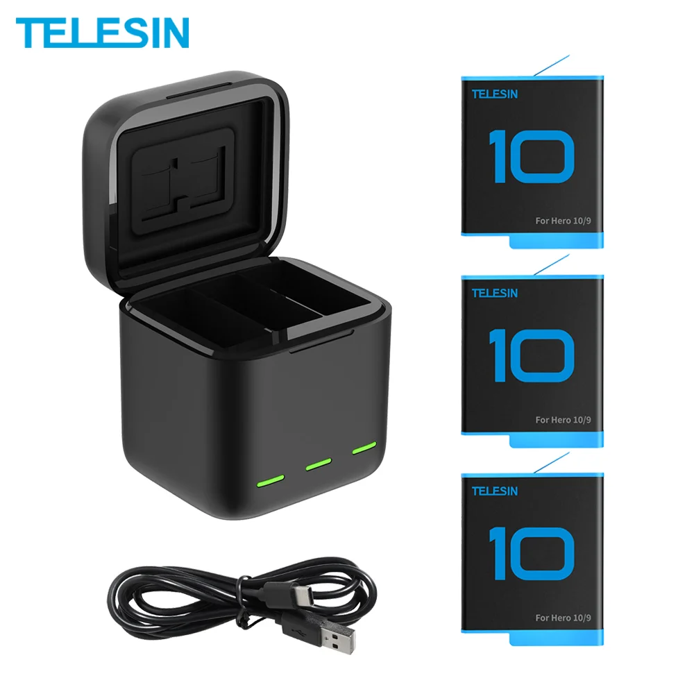 Литий-ионные аккумуляторы TELESIN 1750 мА ч, для GoPro Hero 10, 9, черное зарядное устройство с TF-картой, аксессуары для быстрой зарядки камеры
