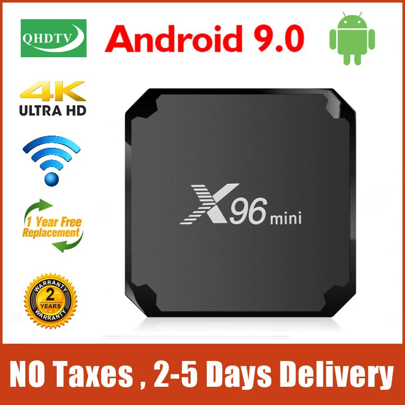 ТВ-приставка X96 Mini QHD, Android 9,0, 4K, 1 + 8 Гб, Amlogic S905W, 4 ядра, 2,4 ГГц, Wi-Fi, 2 + 16 Гб
