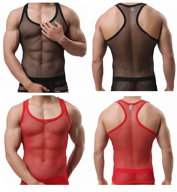 Сексуальные мужские майки из прозрачной сетчатой ткани, прозрачный ...