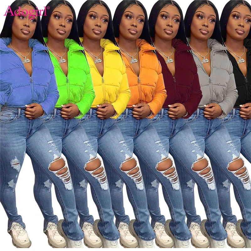 Adogirl для женщин; Осенне-зимняя однотонная короткая куртка со стоячим воротником, пальто с молнией и длинными рукавами модная уличная теплая верхняя одежда S-3XL