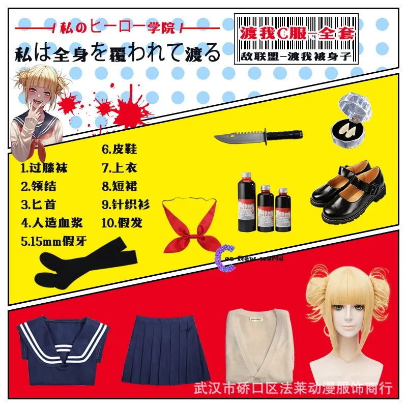 Мой герой Академия косплей костюм парик аниме Нидерланды боку нет героев Академия химико Тога JK матросские свитера униформа для девушек