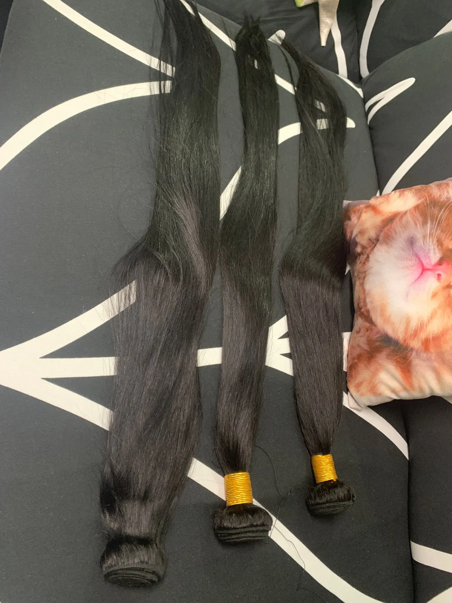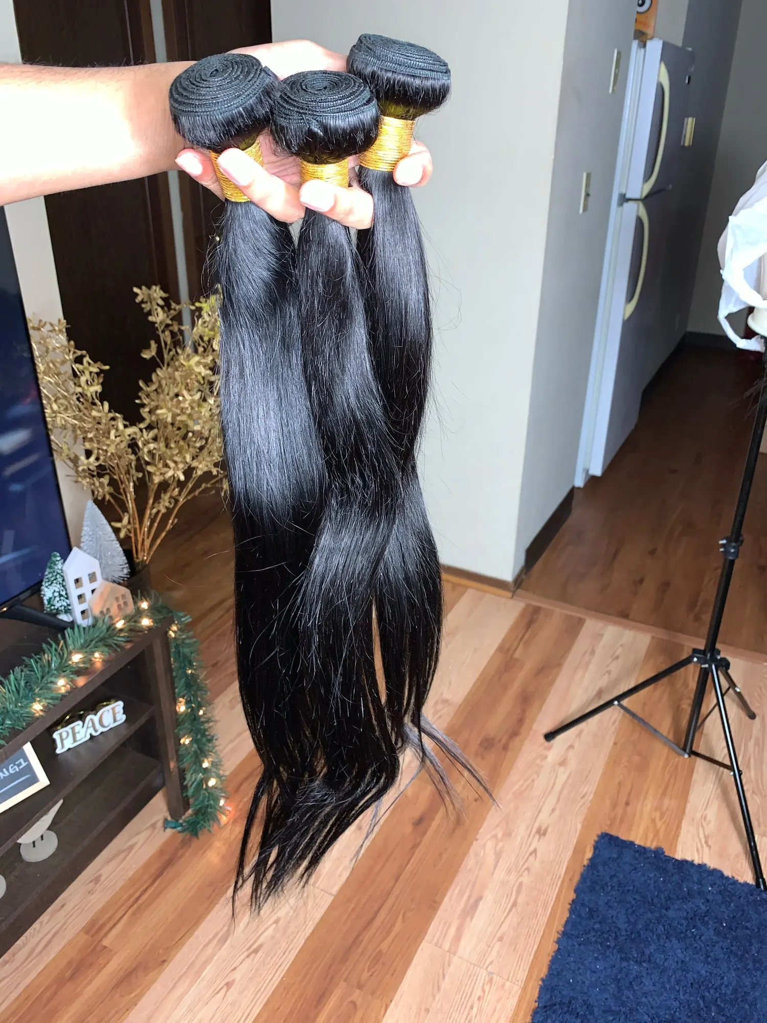 Мне нравятся эти волосы! Я только начала продавать и заказывать парики, и мне понравились 30-дюймовые пучки! Он был очень полный. И не линяет! Я помыл волосы, и они все еще не линяют! Очень быстрая доставка!