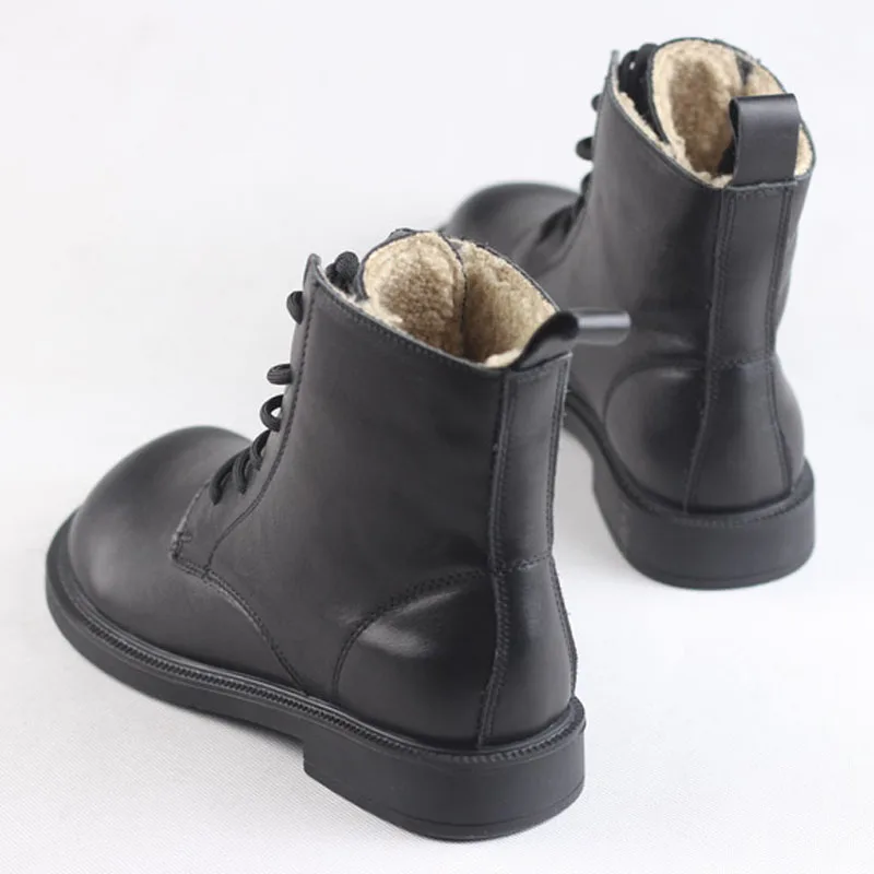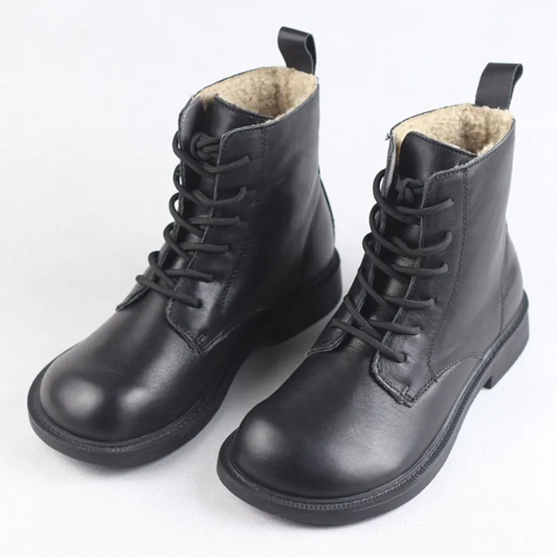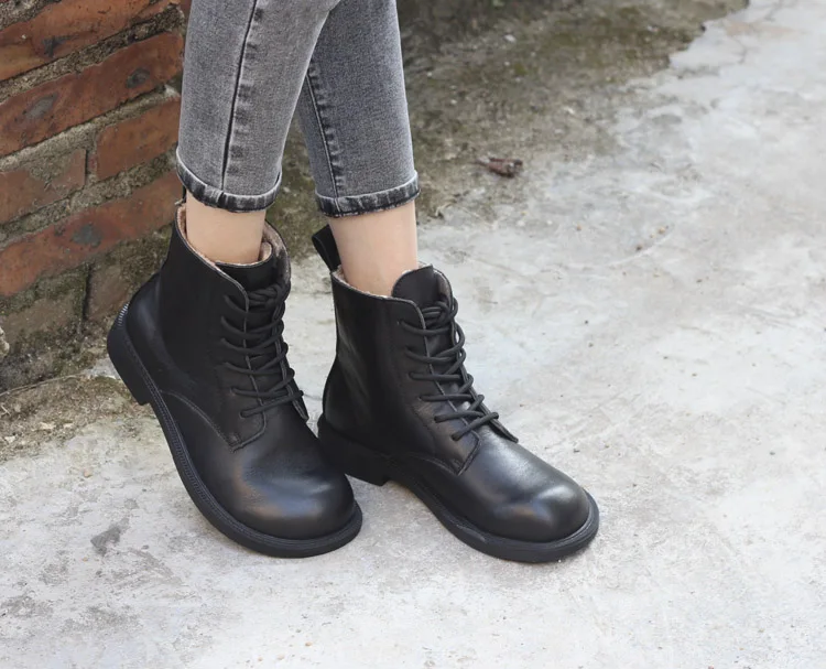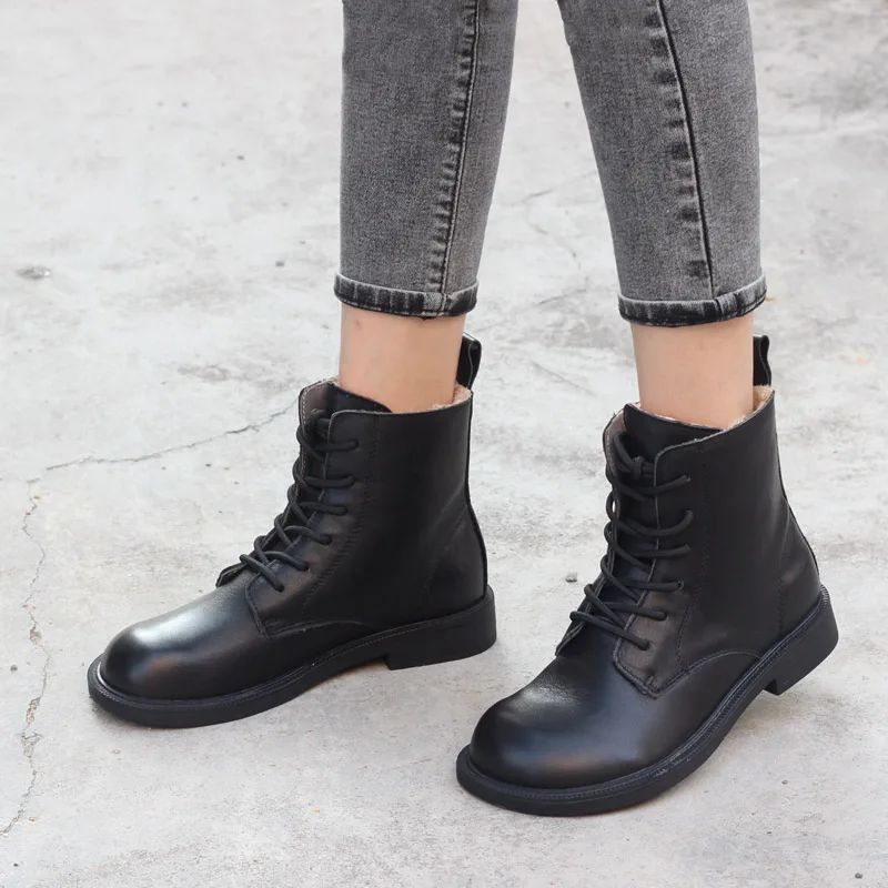 Ботинки женские из натуральной кожи, на шнуровке, с круглым носком,...