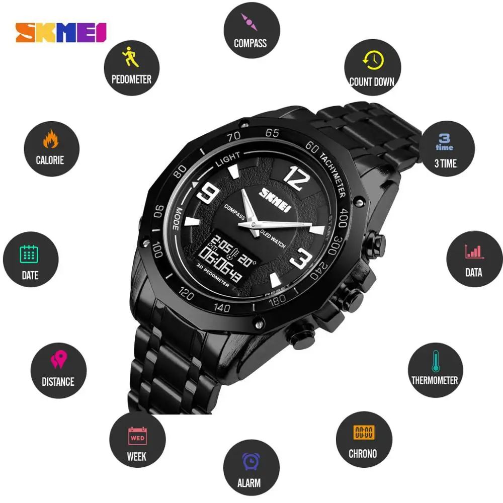 Мужские умные часы SKMEI, двойной дисплей, компас, будильник, подсч...