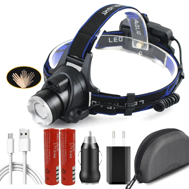 XM-L2 U3 T6 налобный фонарь 2 светодиодные лампы датчик голова фонарик лампа факел фары водонепроницаемый USB аккумуляторная батарея 18650 фонарь