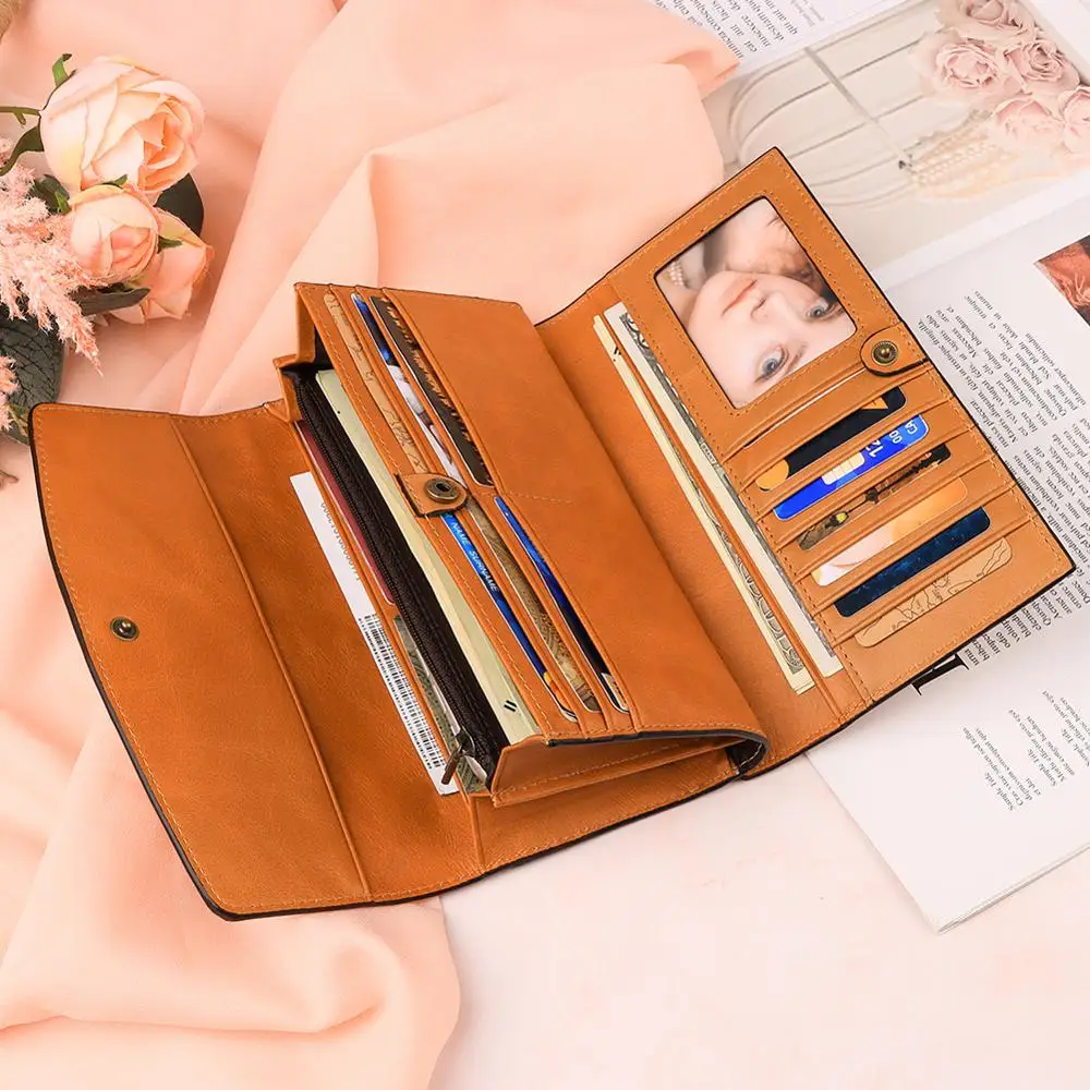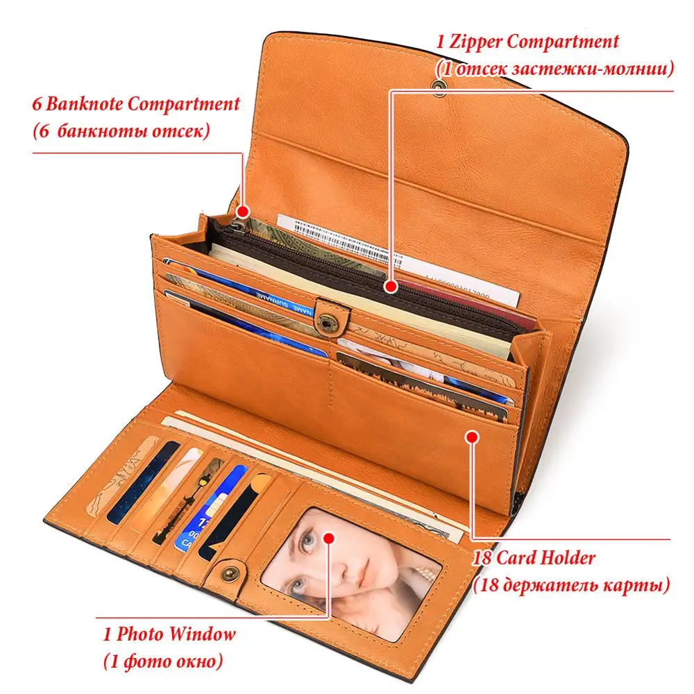 KAVIS Бесплатная гравировка Для женщин Длинный кошелек Много отдело...