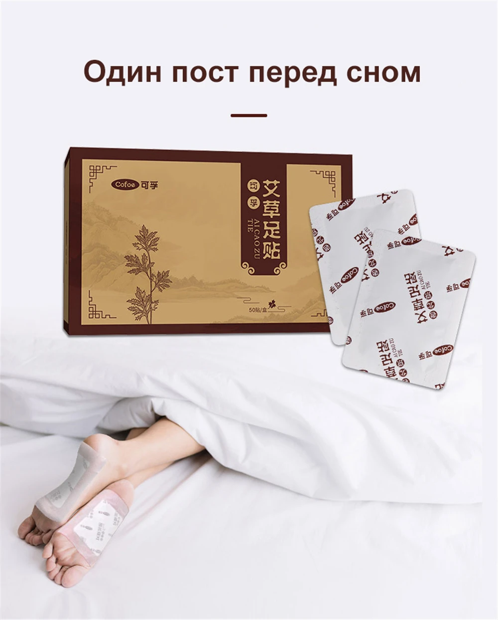 Cofoe, 50 шт в наборе, пластыри, улучшающие сон с клеящим материалом для средства ухода за кожей стоп колодки Развеять Сырости полынь/имбирь ног, выводит токсины уход за ногами
