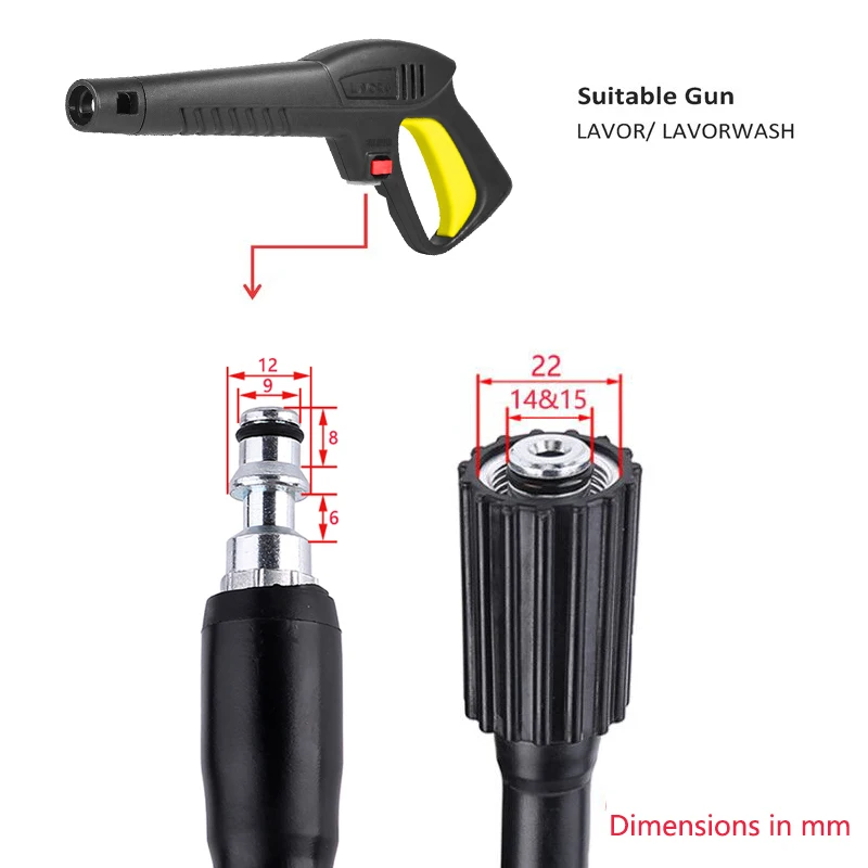 5. Концы шланга: Совместимость с оригинальным шлангом для мойки, отсутствие утечки. (Пожалуйста, проверьте Размер фитинга и убедитесь, что вы покупаете подходящий шланг)