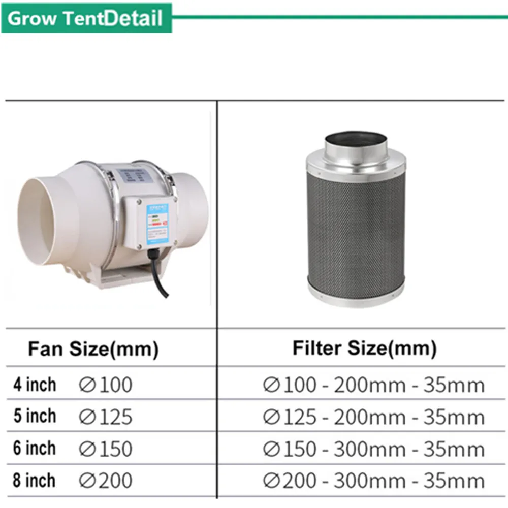 Growbox Гроу тенты для полный комплект растут светильник лампы, 4 штукинабор568 дюймов вентиляторы воздушный фильтр с активированным углем TS 600-1200 Вт переменного тока, 50-300 см расти палатку для использования внутри помещений