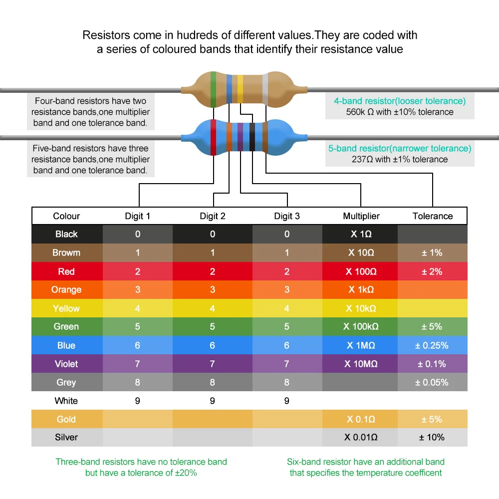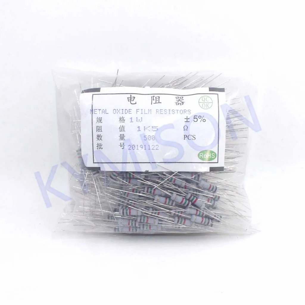 500 шт., 1 Вт, оксид пленочного резистора, 1R 1M, 10R, 20R, 100R, 220R, 1K, 2,2 K, 4,7 K, 10K, 22K, 47K, 100K, 100, 220 Ом, четыре цвета, Кольцевое сопротивление