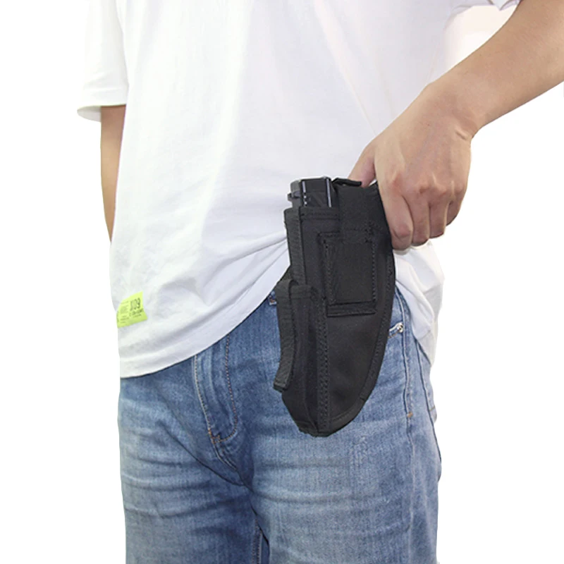 Особенности продукта: Сделано из высококачественного нейлона Конструкция задней системы molle, может использоваться для ремня, рюкзака или жилета. Подходит для универсального типа пистолета Дизайн для правой и левой руки Доступные цвета: черный цвет Посылка товара: 1 шт. x кобура для пистолета