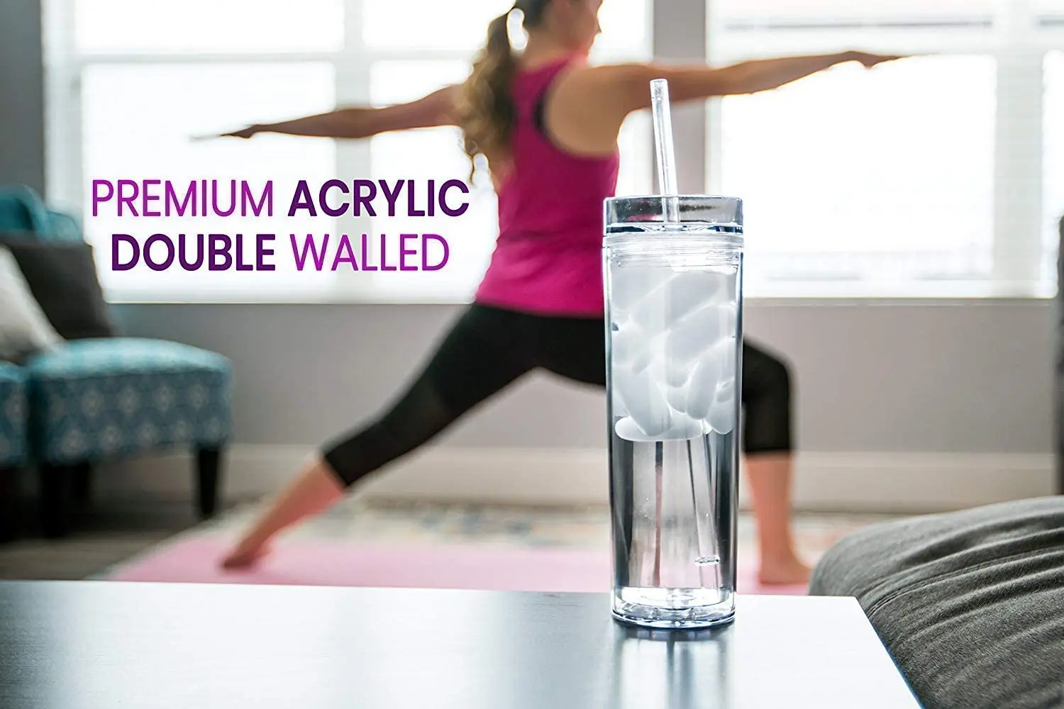 Набор из 2 тонких акриловые тумблеры с крышкой и соломинкой, 16 унций прозрачные пластиковые стаканы с двойными стенками, многоразовые акриловые чашки с соломинкой
