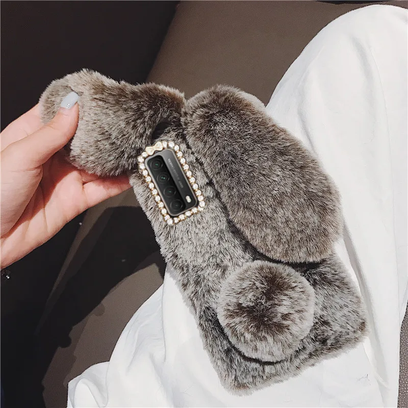 Чехол для телефона Honor 20e 20s 30 20 10 9 lite, пушистый кролик, милый силиконовый чехол для Huawei P20 P30 lite e P40 Pro 9X 9A 9C, плюшевый чехол