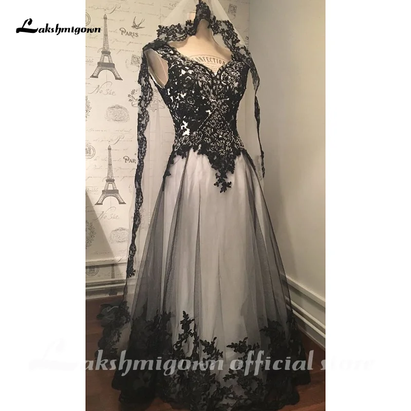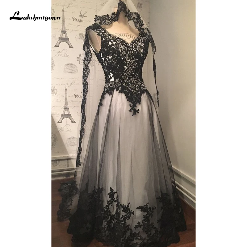 Lakshmigown свадебное платье в готическом стиле Кружевная аппликация vestido de noiva, черные трапециевидные Свадебные платья с V-образным вырезом
