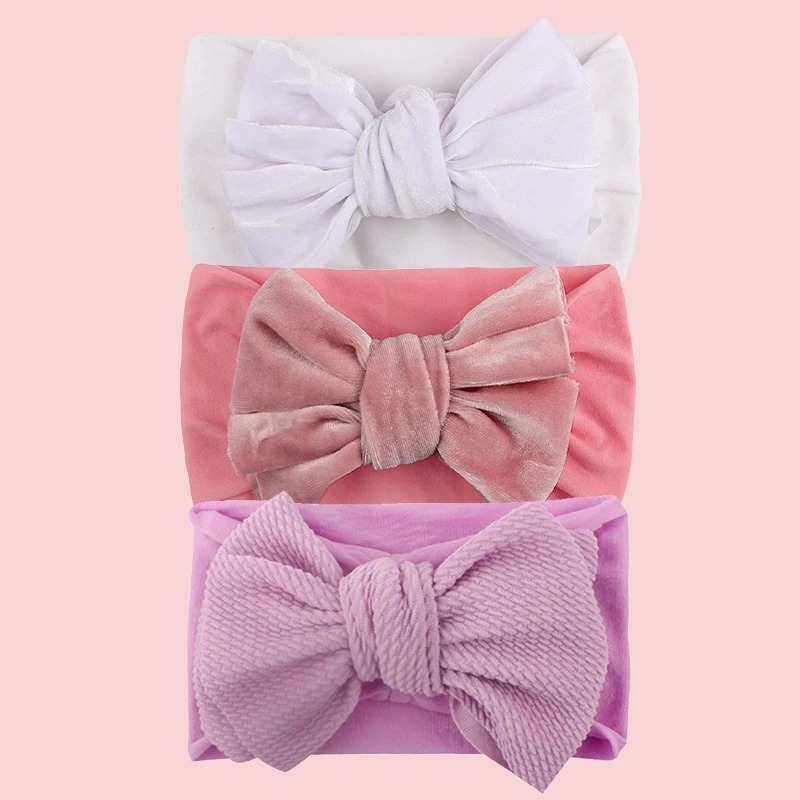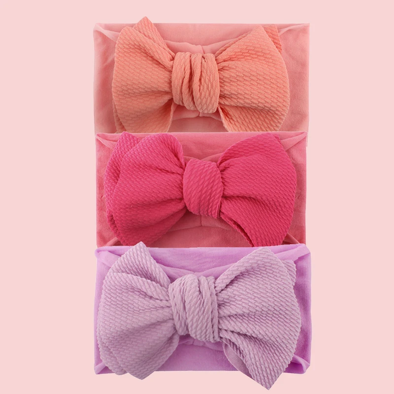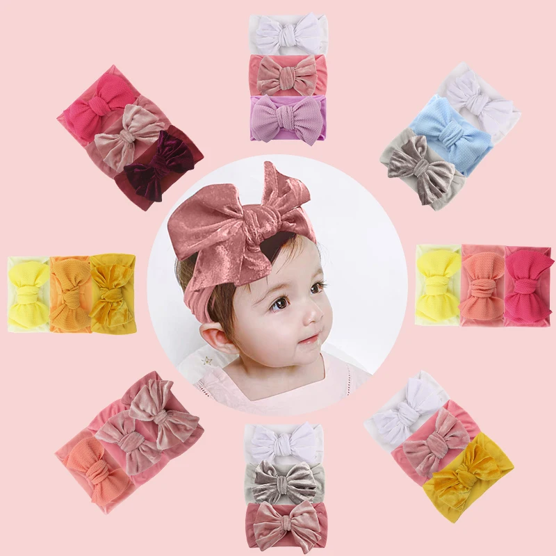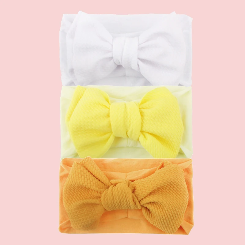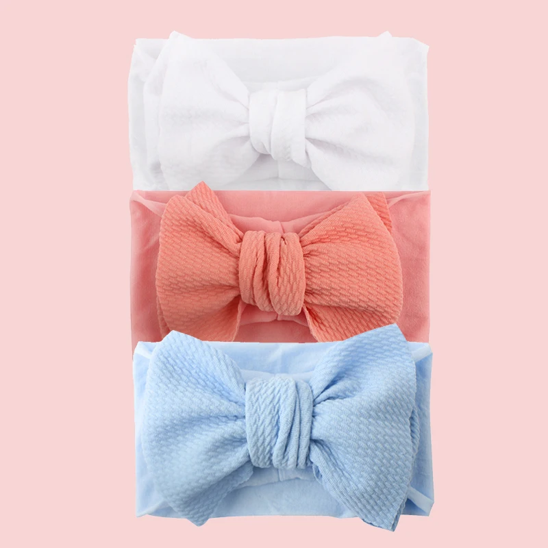Однотонная нейлоновая Детская повязка на голову, 3 шт.компл., повязка на голову с большим бантом для маленьких девочек, тюрбан, Мягкая Детская повязка для волос, аксессуары для волос для девочек