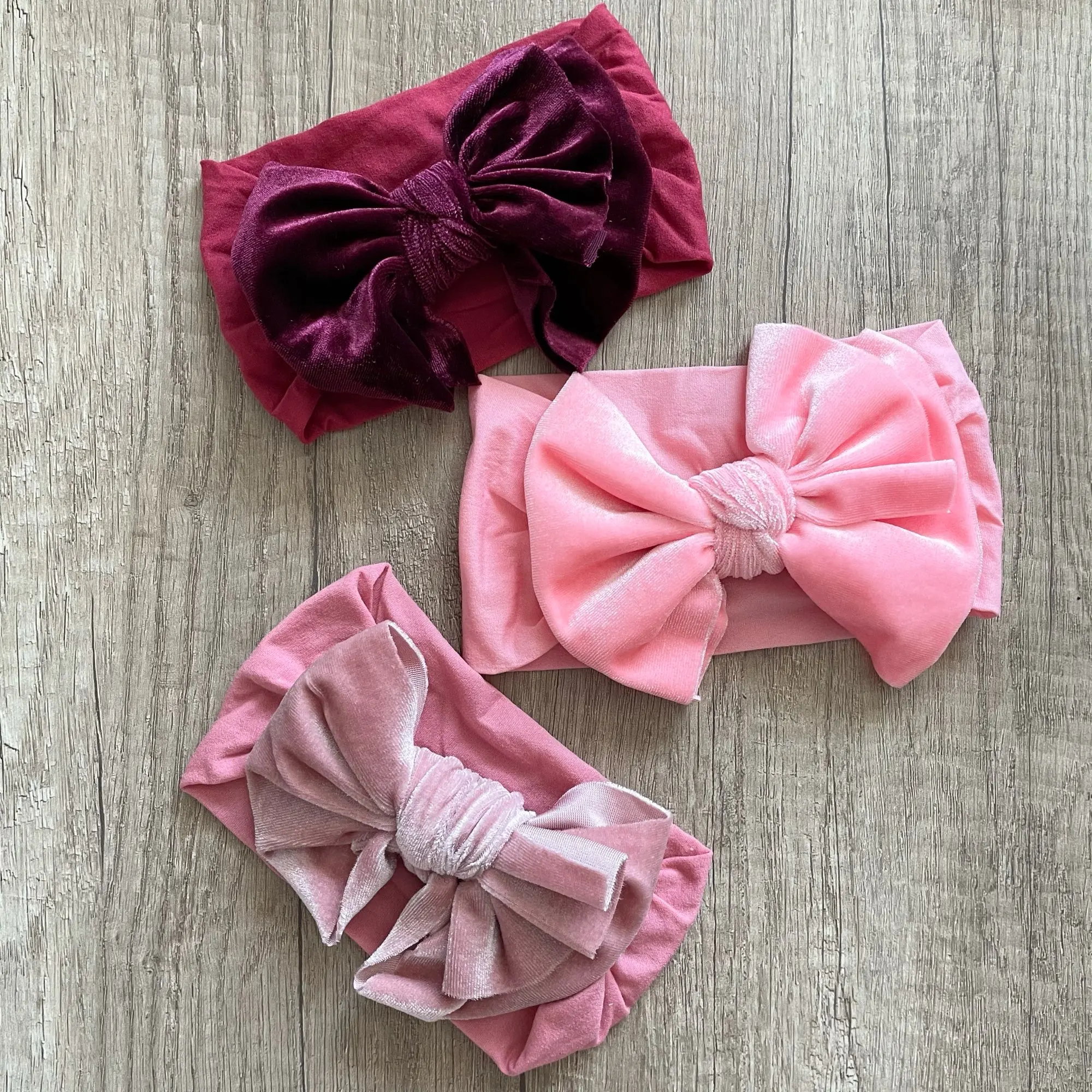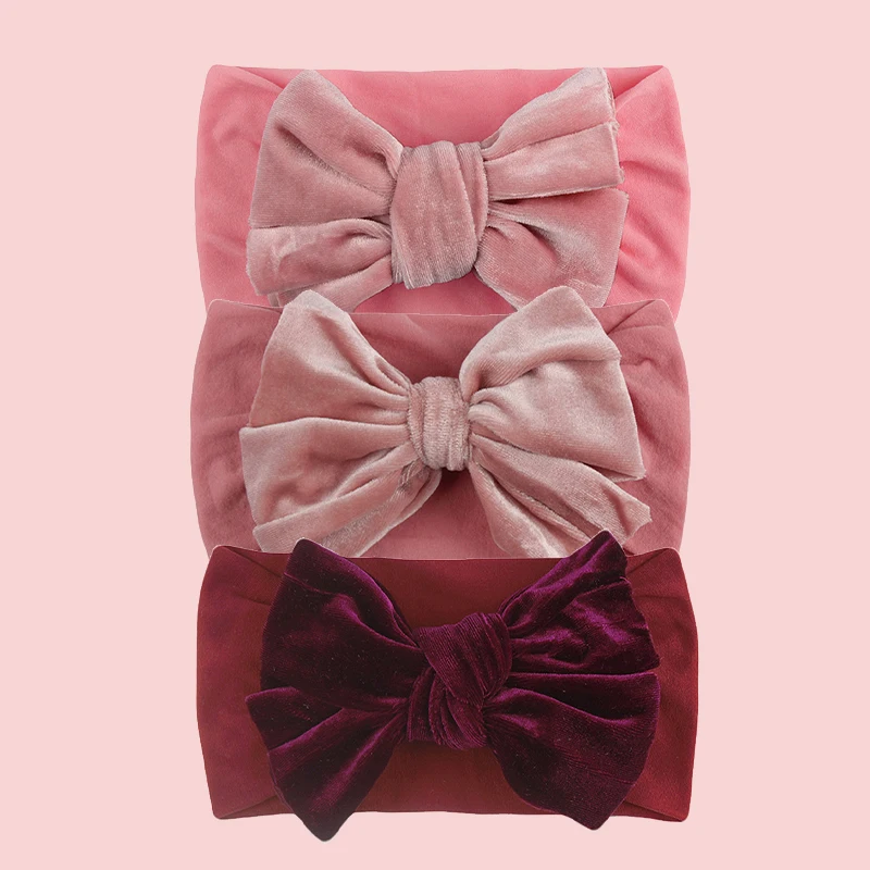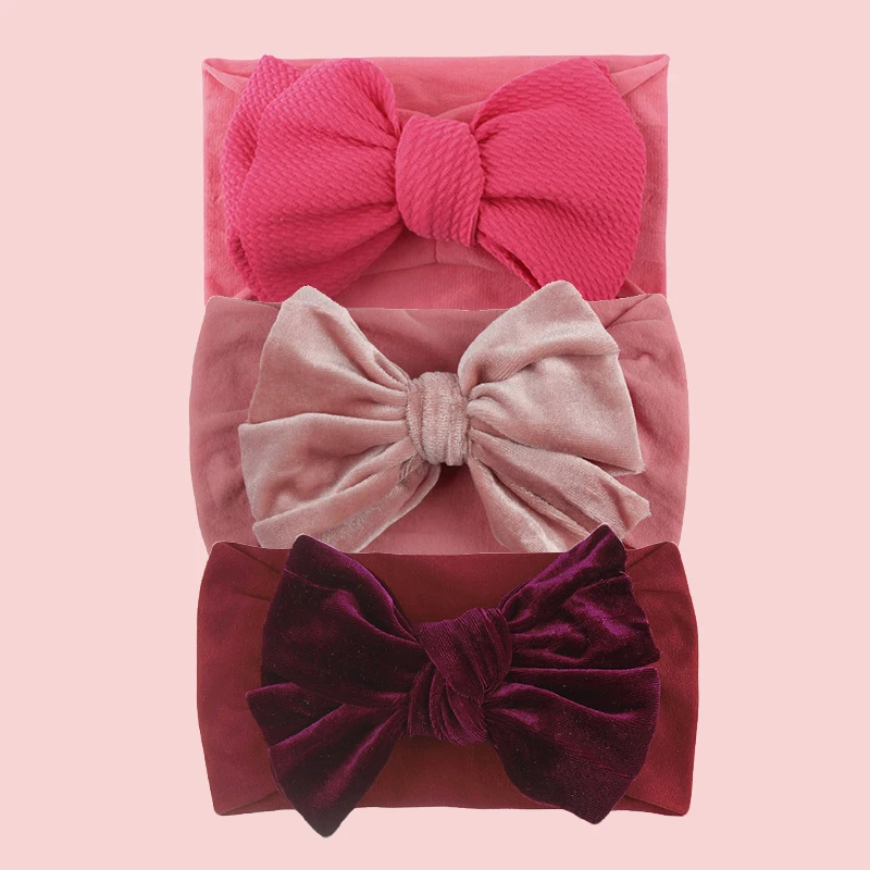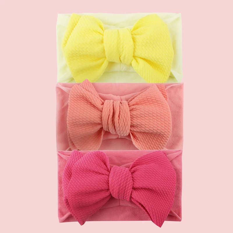 Однотонная нейлоновая Детская повязка на голову, 3 шт.компл., повязка на голову с большим бантом для маленьких девочек, тюрбан, Мягкая Детская повязка для волос, аксессуары для волос для девочек
