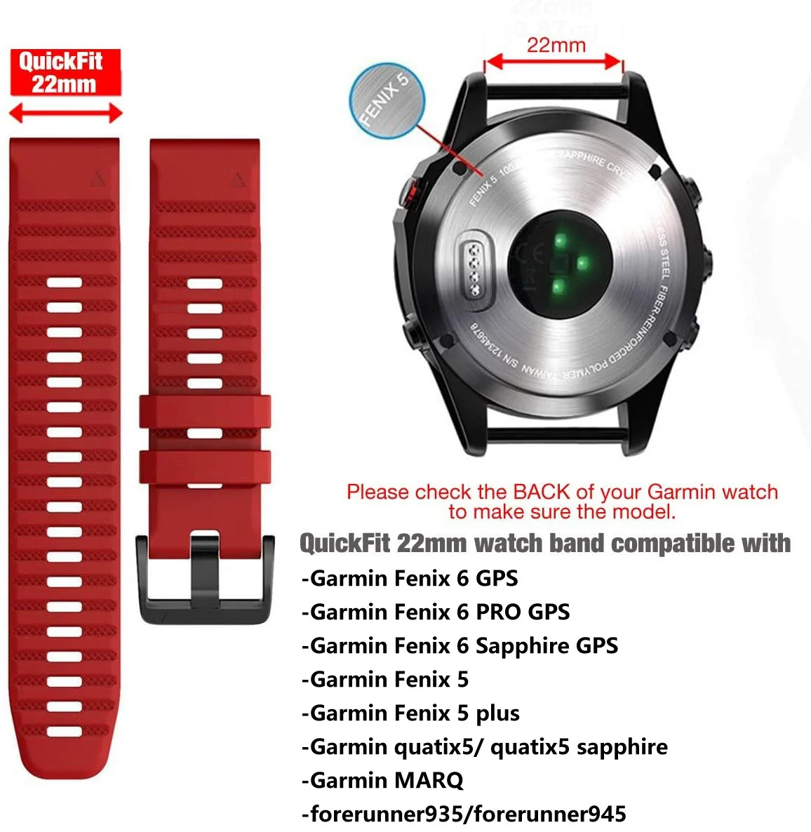 Ремешок для наручных часов Garmin Fenix 6 6X Pro 5X 5 Plus 3HR, быстросъемный силиконовый браслет для Forerunner 935 945, 22 26 мм