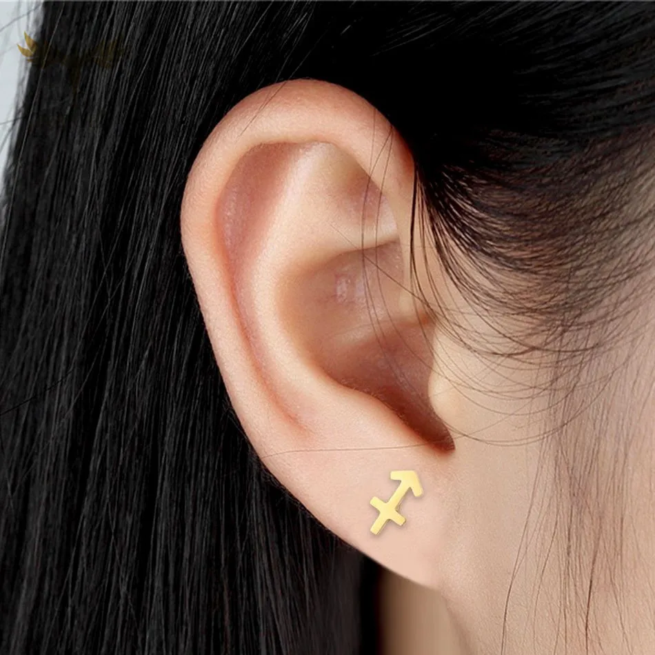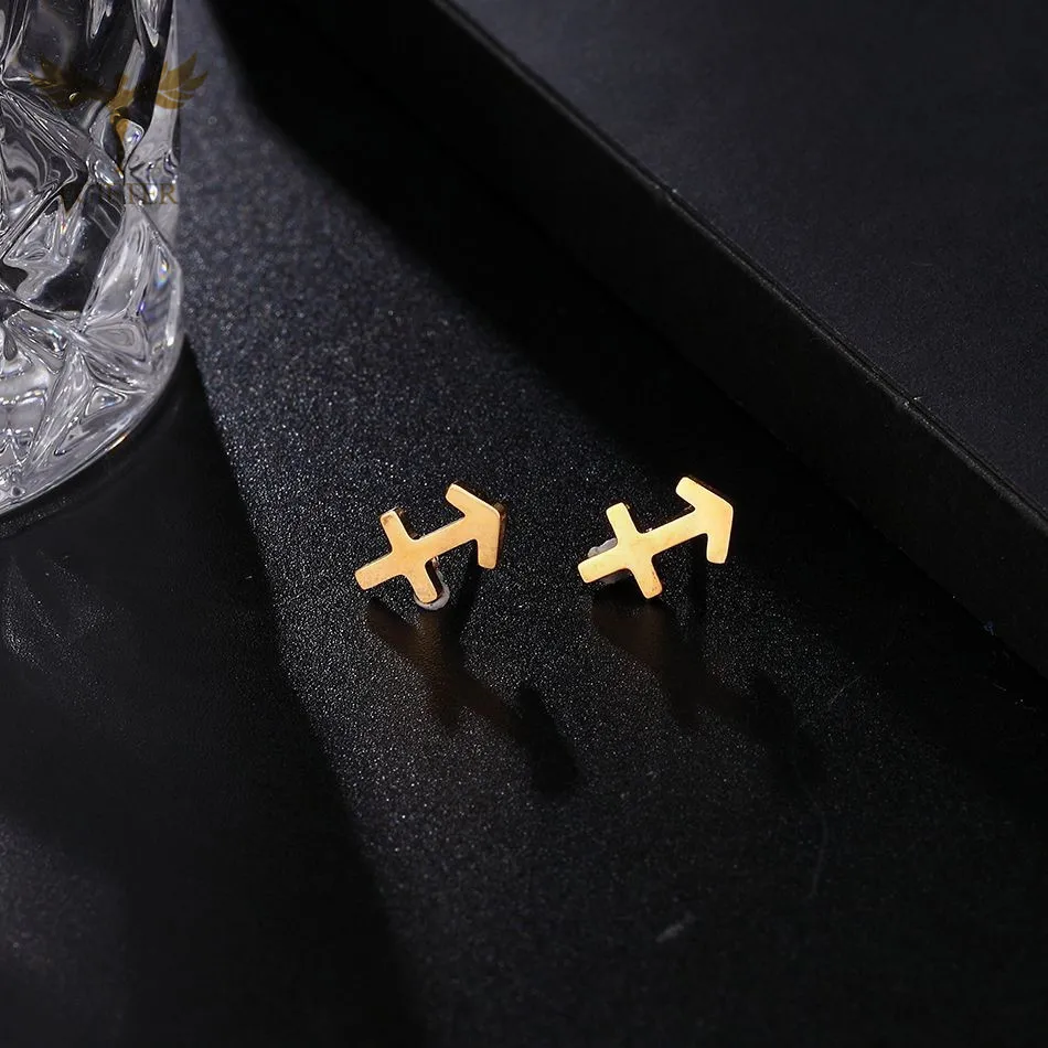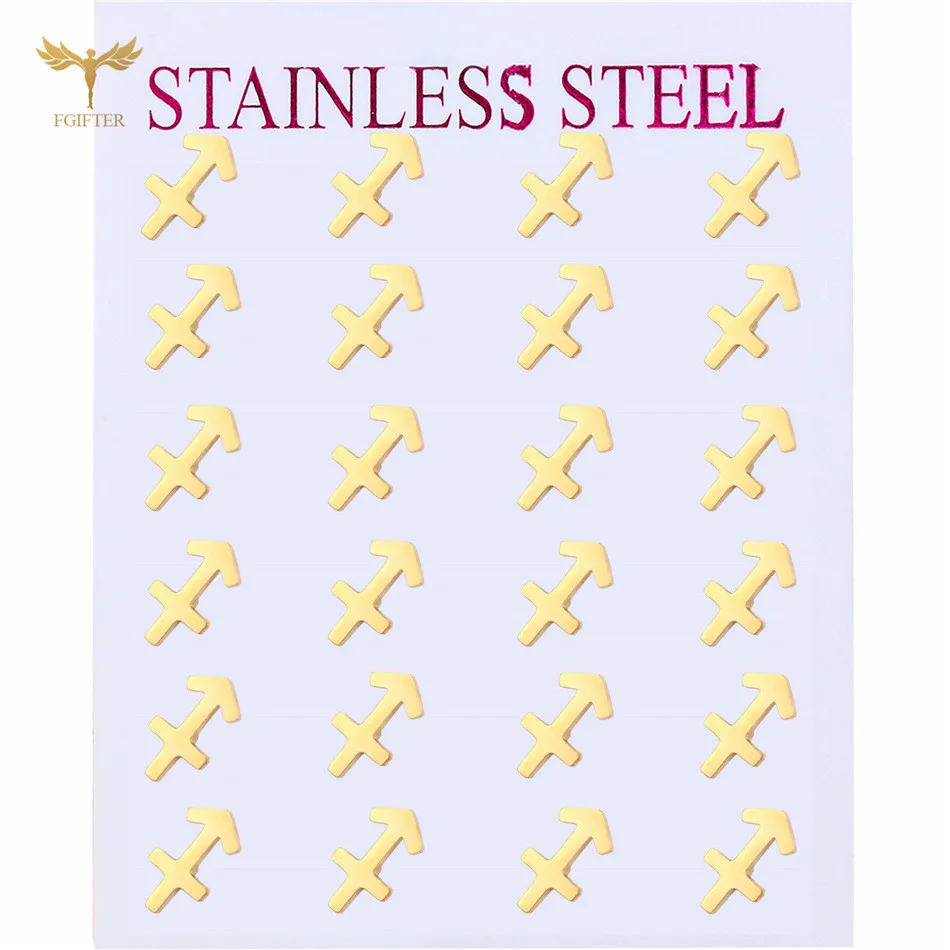 Западная 12 знаков зодиака брелок для серьги-гвоздики в стиле унисекс яркие украшения Золотой Мода из нержавеющей стали ювелирные изделия оптом