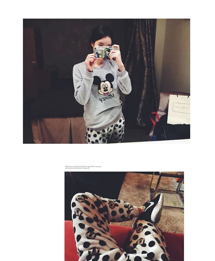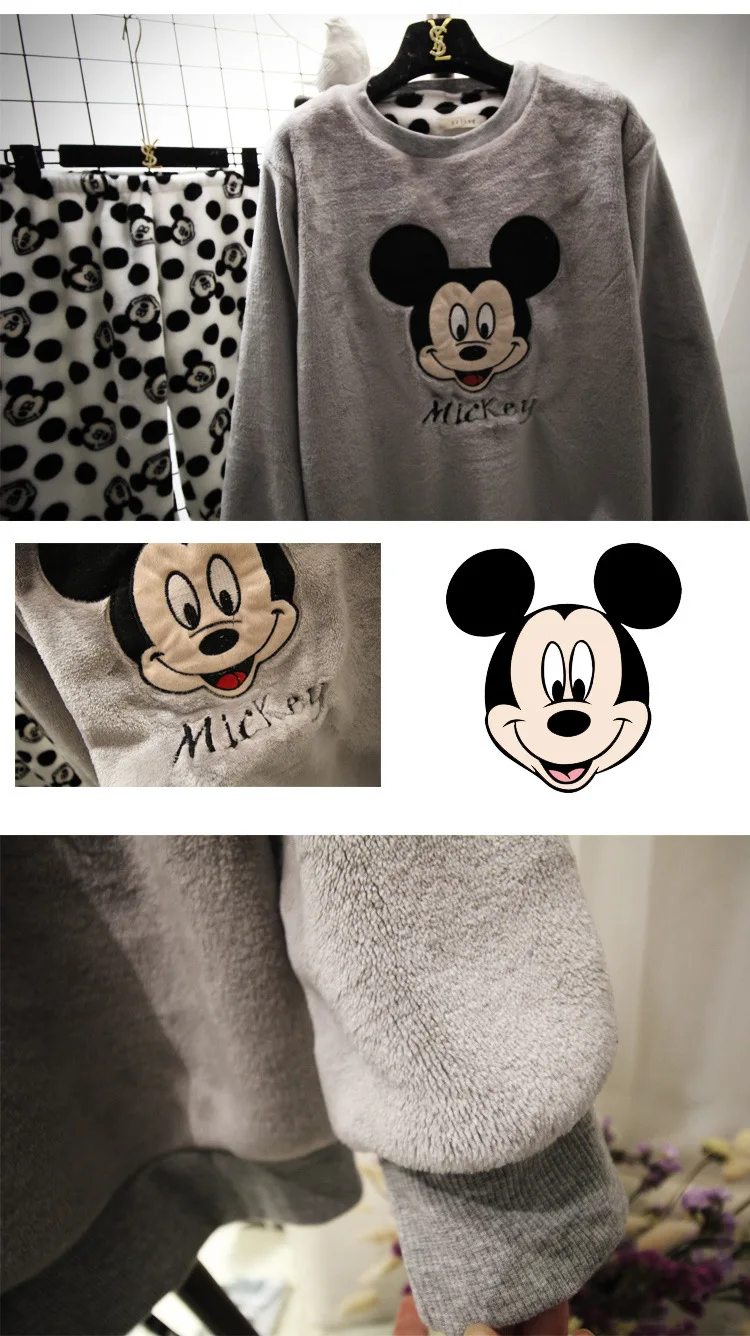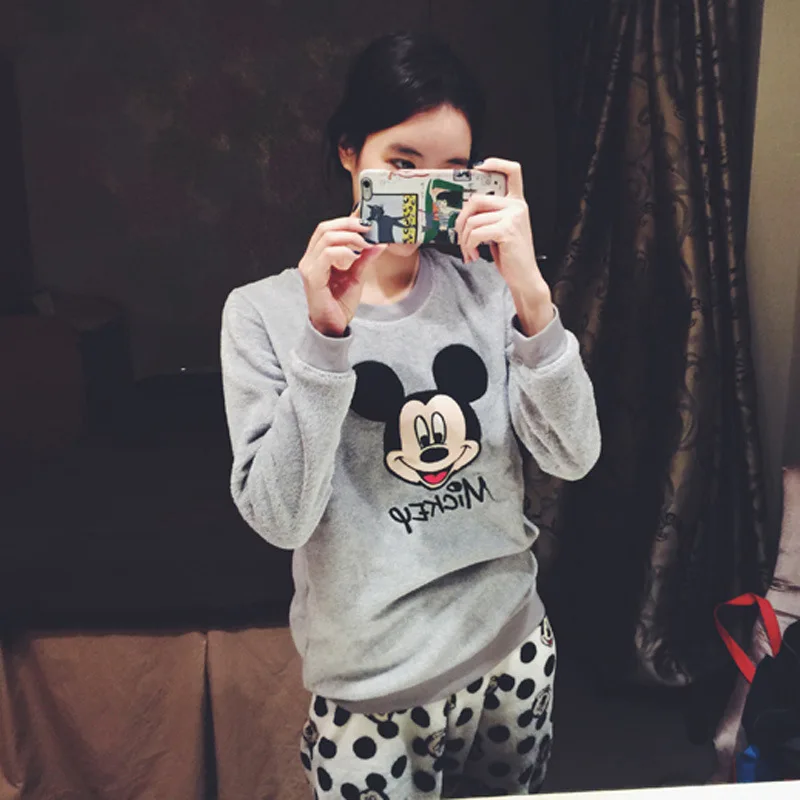 Зимняя женская пижама Disney, пижамный комплект, домашняя одежда, пижамный комплект с длинным рукавом и мультяшным рисунком, одежда для сна, женская пижама, плотная теплая одежда для сна