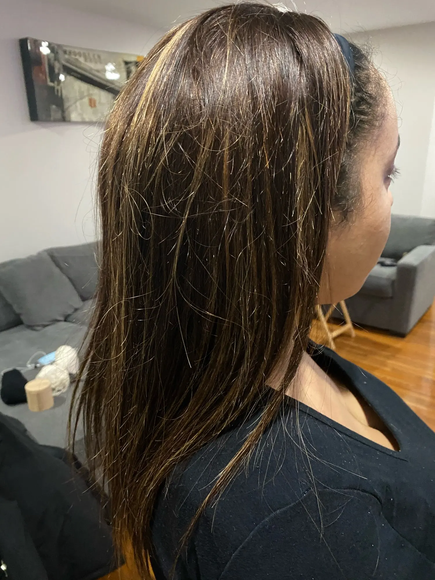 Love the brown highlights. This is perfect if you have black roots and want to play with dyed hair because your natural black roots will looks realistic with the ombré hair. 16 inches in the photo. I just have to iron it out. So easy to put on! Definitely a must if you do not know how to lay lace.